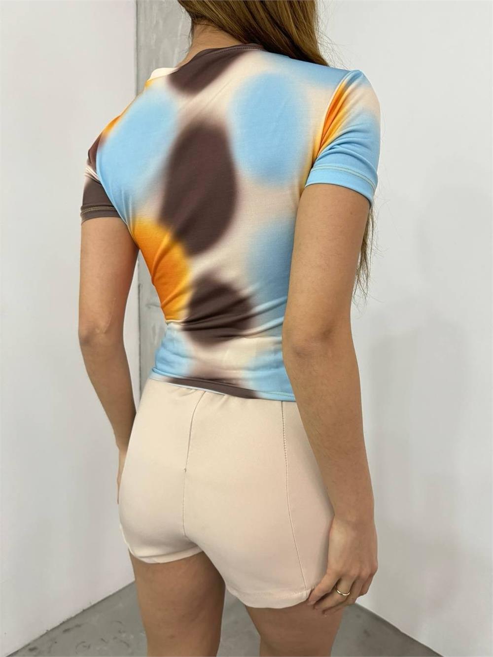 Waist Shoulder Gathered Batik Print Sendy Blouse - Apricot Color (358-12303-R60)