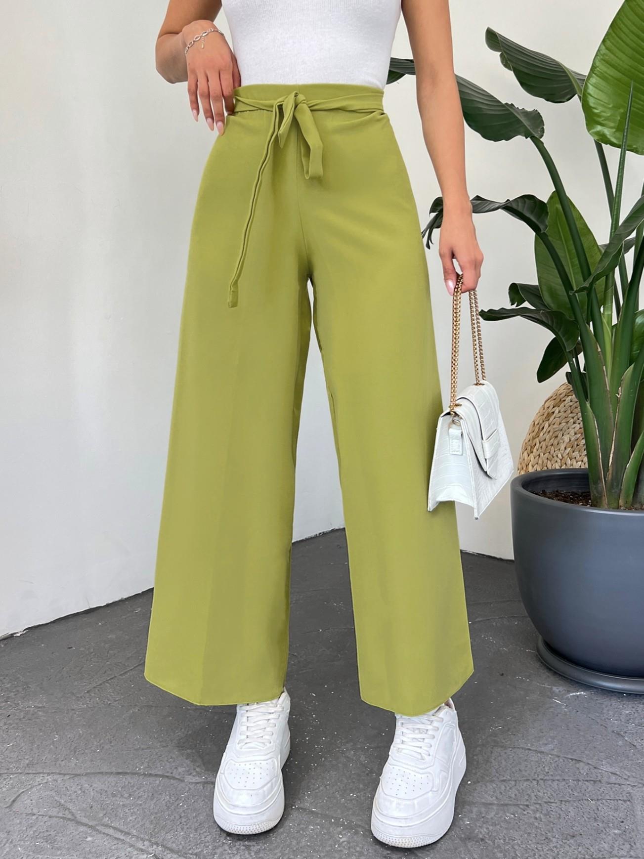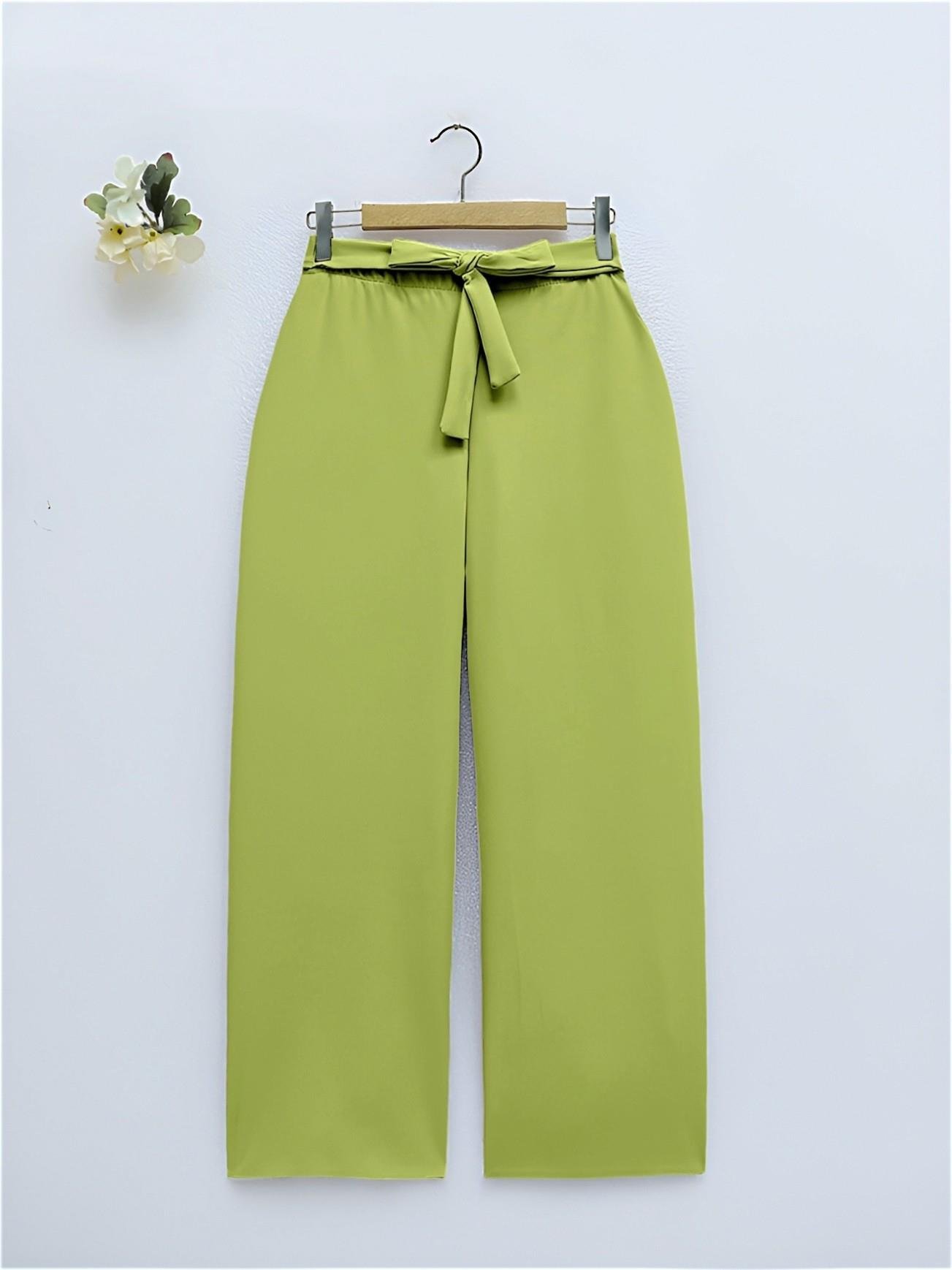 Tie Waist Double Wide Leg Trousers -Pistachio Green (286-0760-R67)