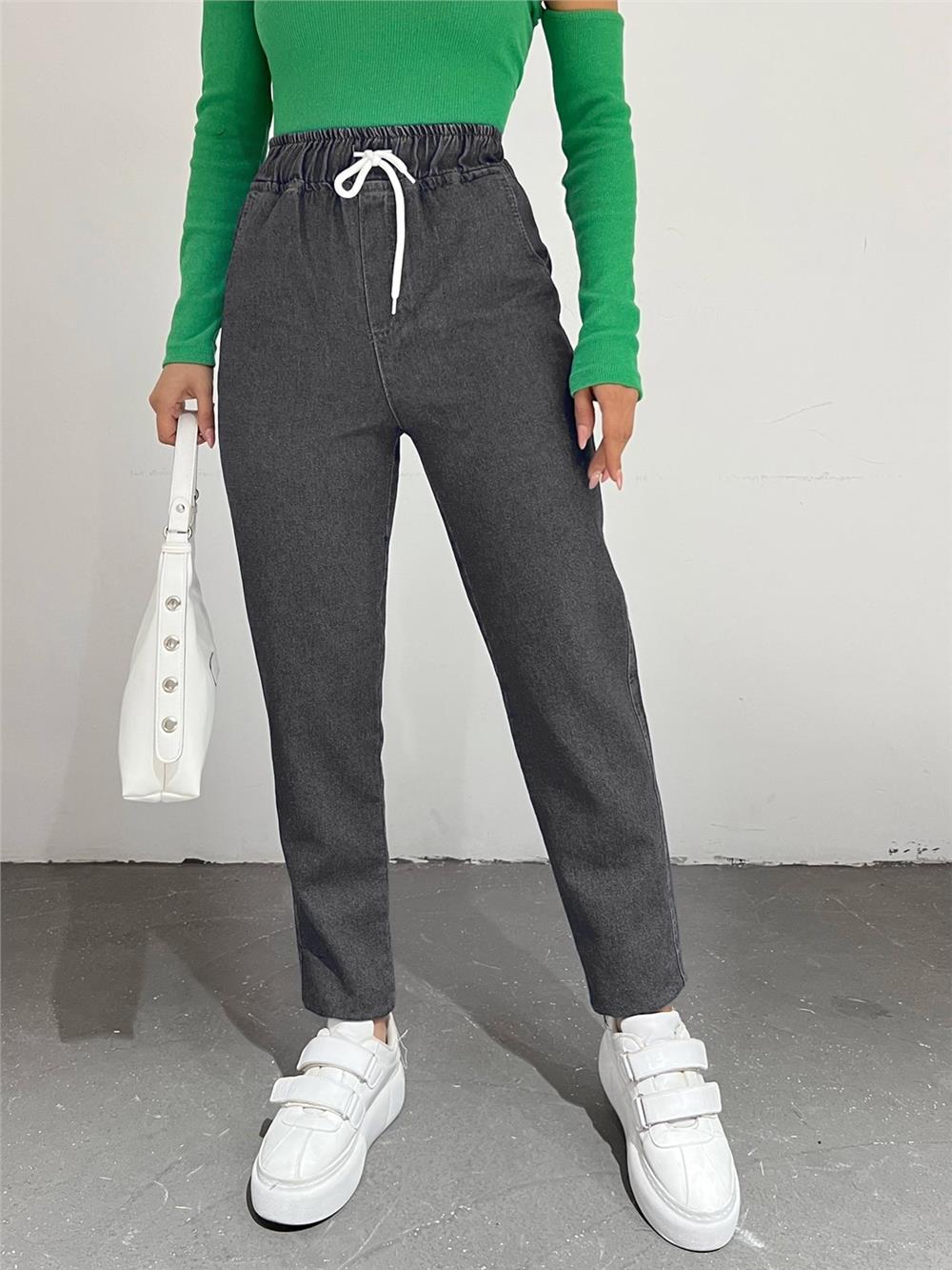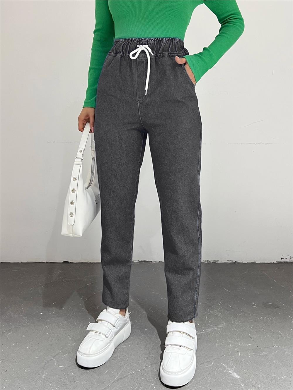 Beli Bağcıklı Kot Pantolon -Smoked (123-5021-R18)