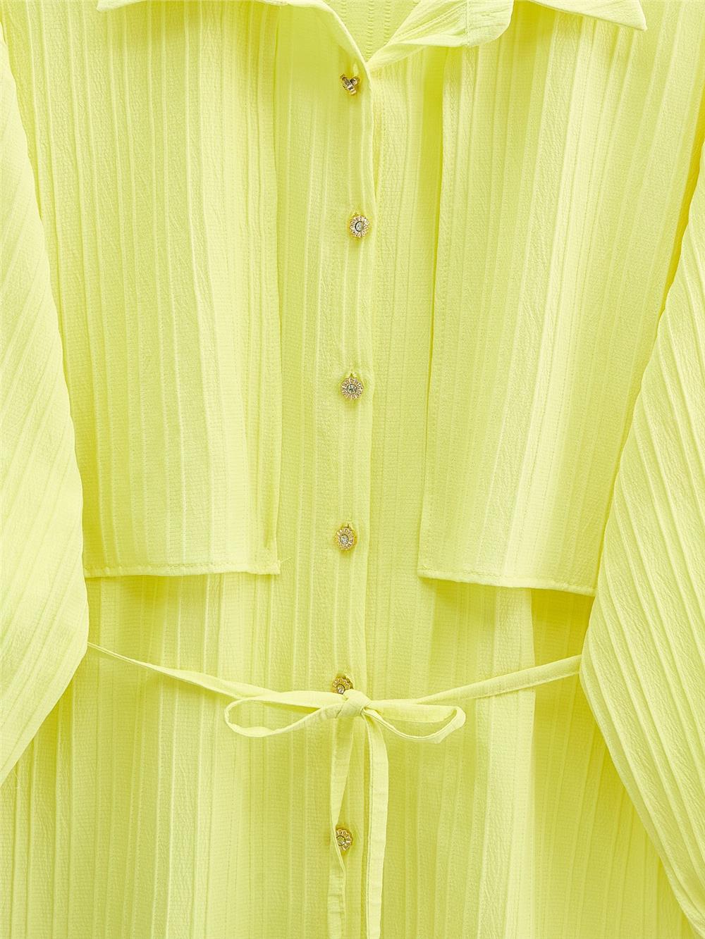 Beli Bağlamalı Bolero Detaylı Taşlı Düğmeli Gömlek -Sarı (398-1057-R22)