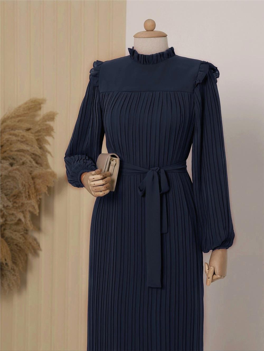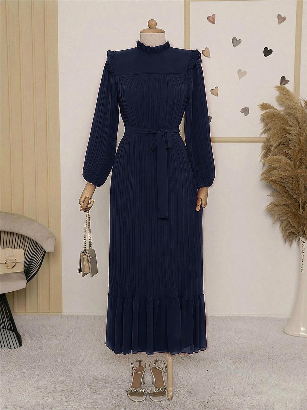 Beli Bağlamalı Kolu Lastikli Eteği Parçalı Şifon Elbise -K.Laci (413-10051-R62)
