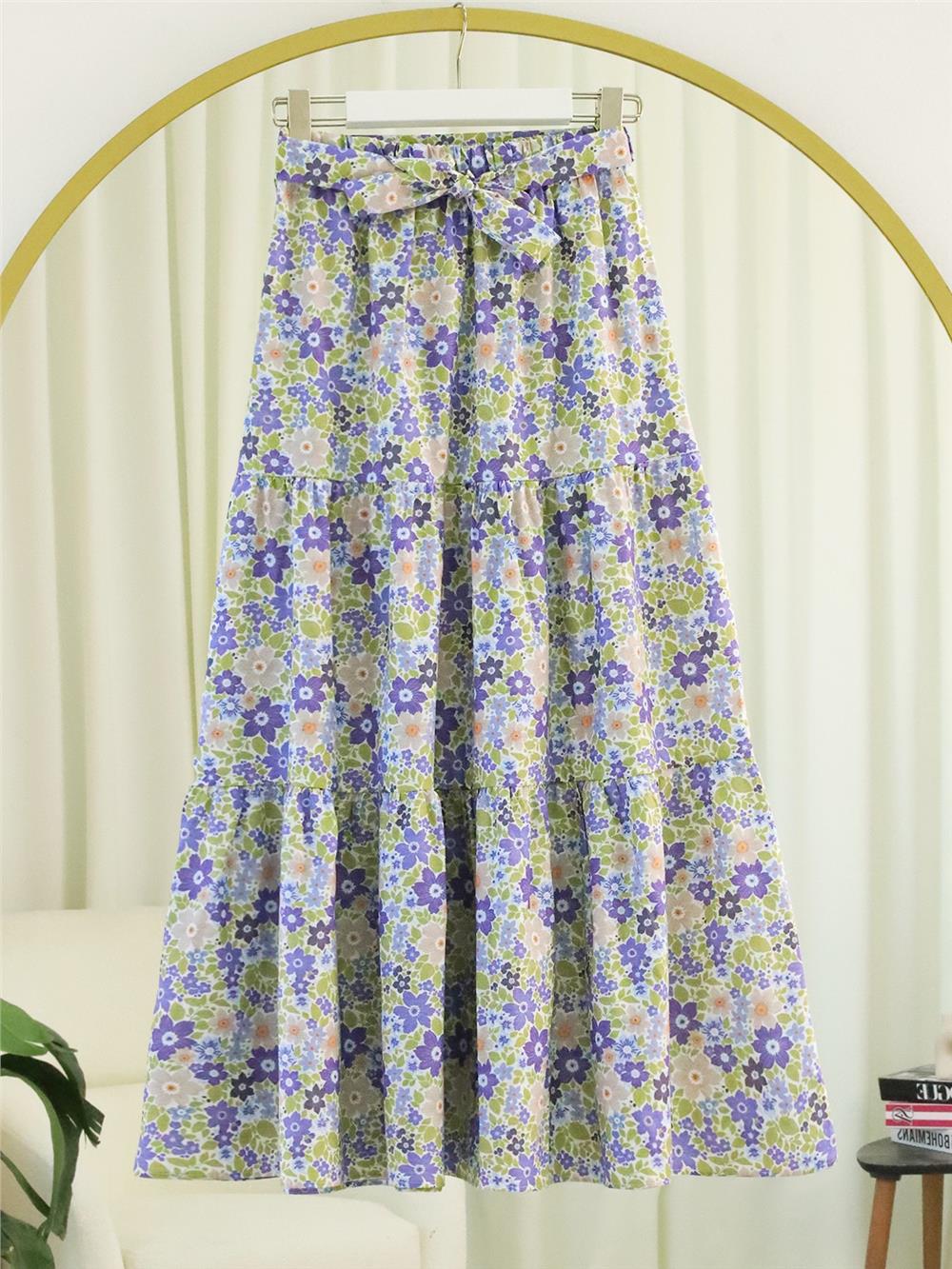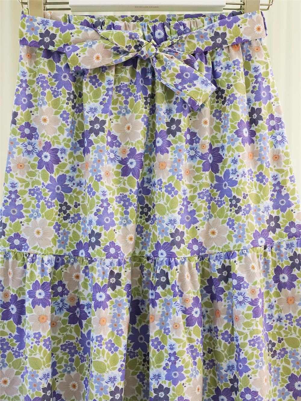 Beli Kemerli Çiçekli Parçalı Etek -Mor (349-40541-R34)
