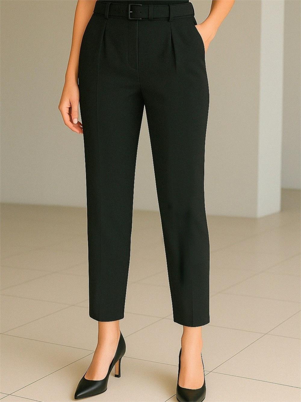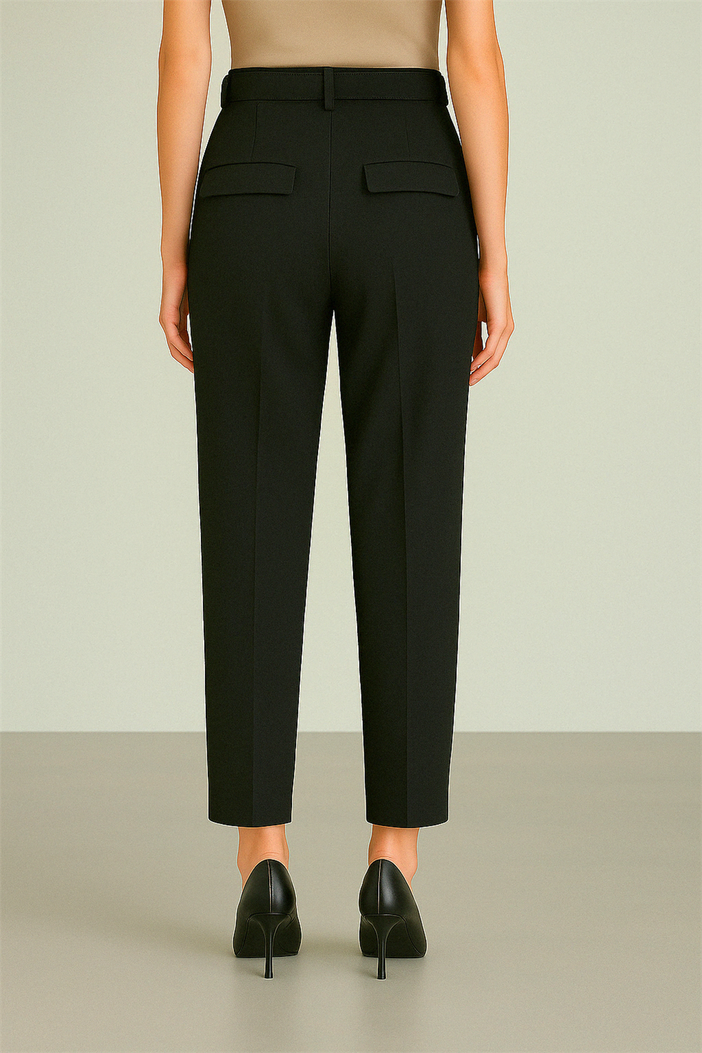 Beli Kemerli Çift Cepli Pantolon -Siyah (138-6725-R01)