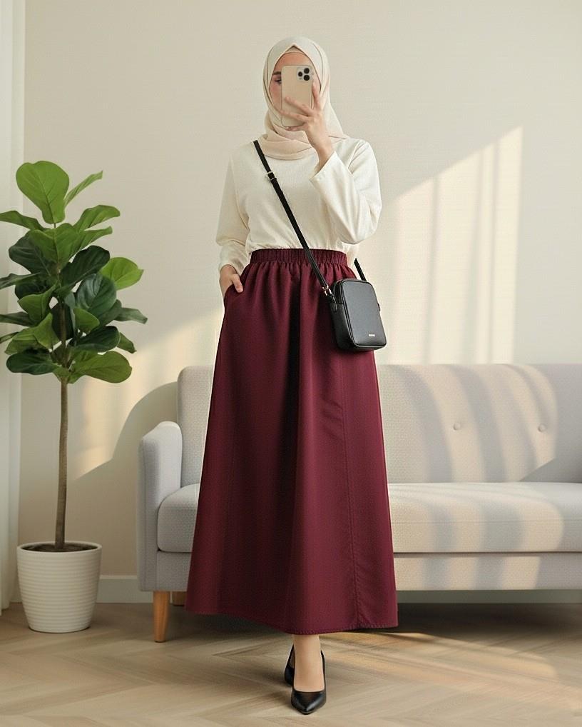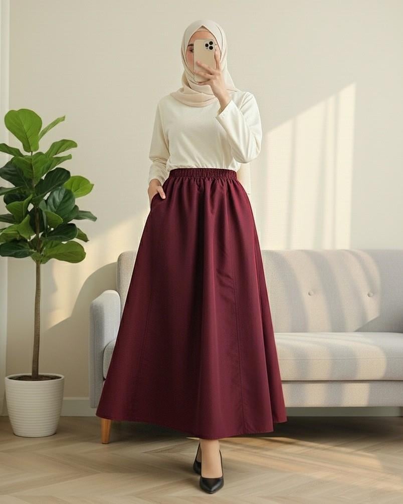 Beli Lastikli Cepli Paraşüt Etek -Bordo (346-3067-R04)