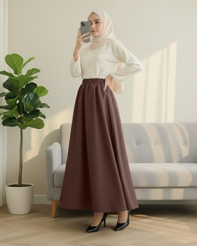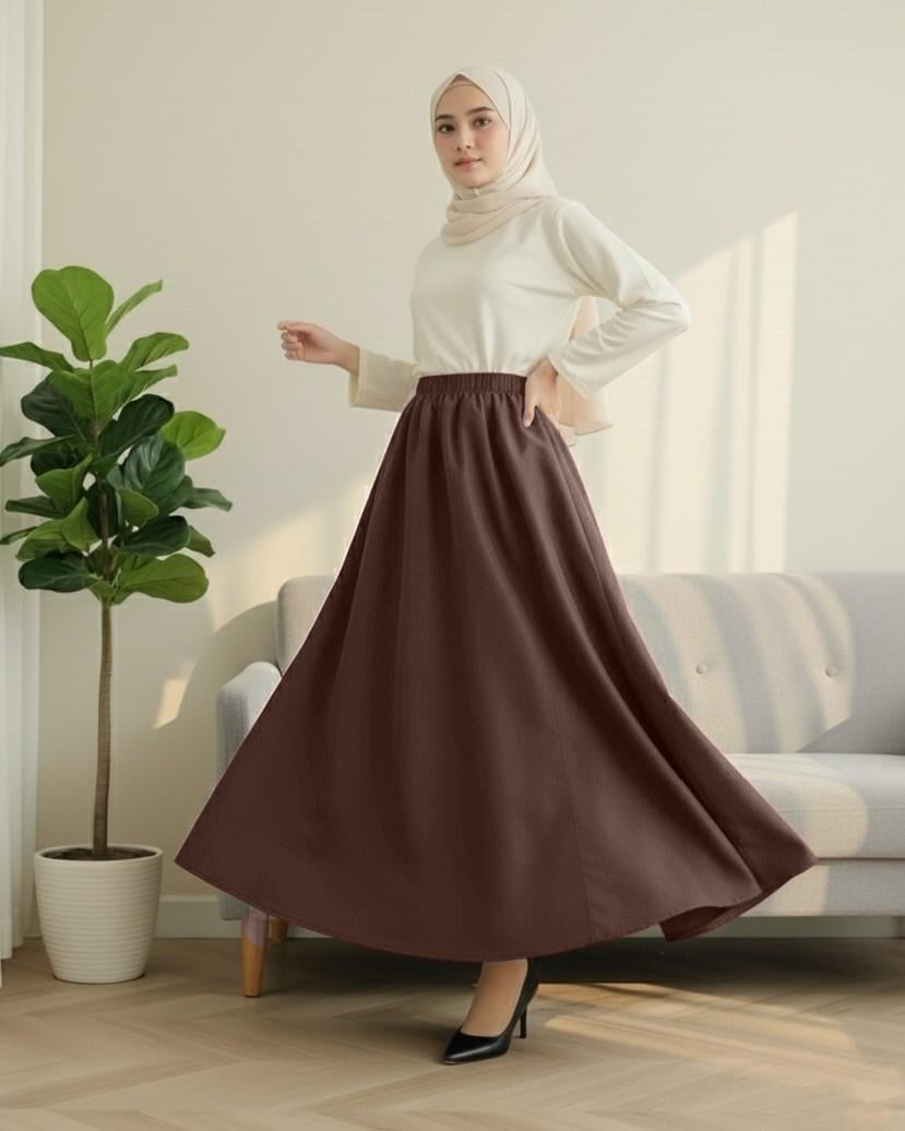 Beli Lastikli Cepli Paraşüt Etek -Kahve (346-3067-R15)