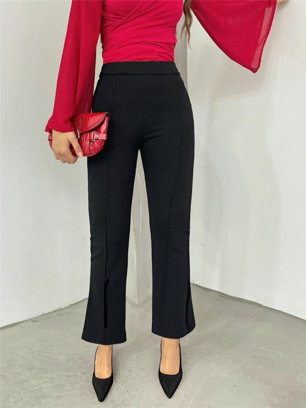 Beli Lastikli Likralı İspanyol Pantolon -Siyah (326-9092-R01)