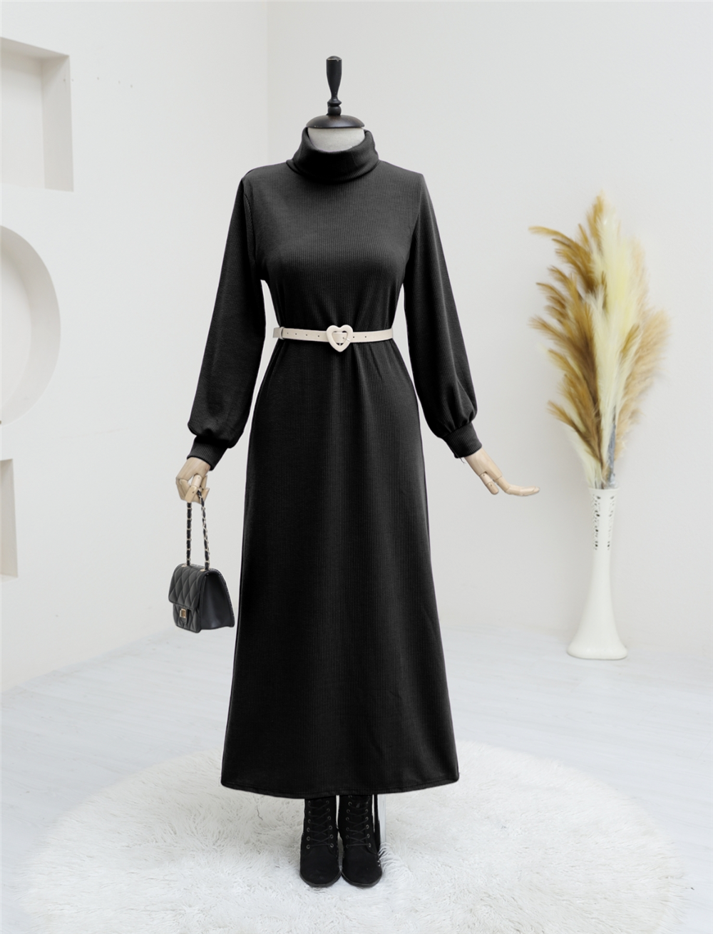Turtleneck Corduroy Dress -Black (349-4084-R01)