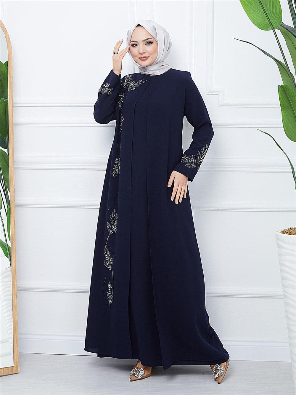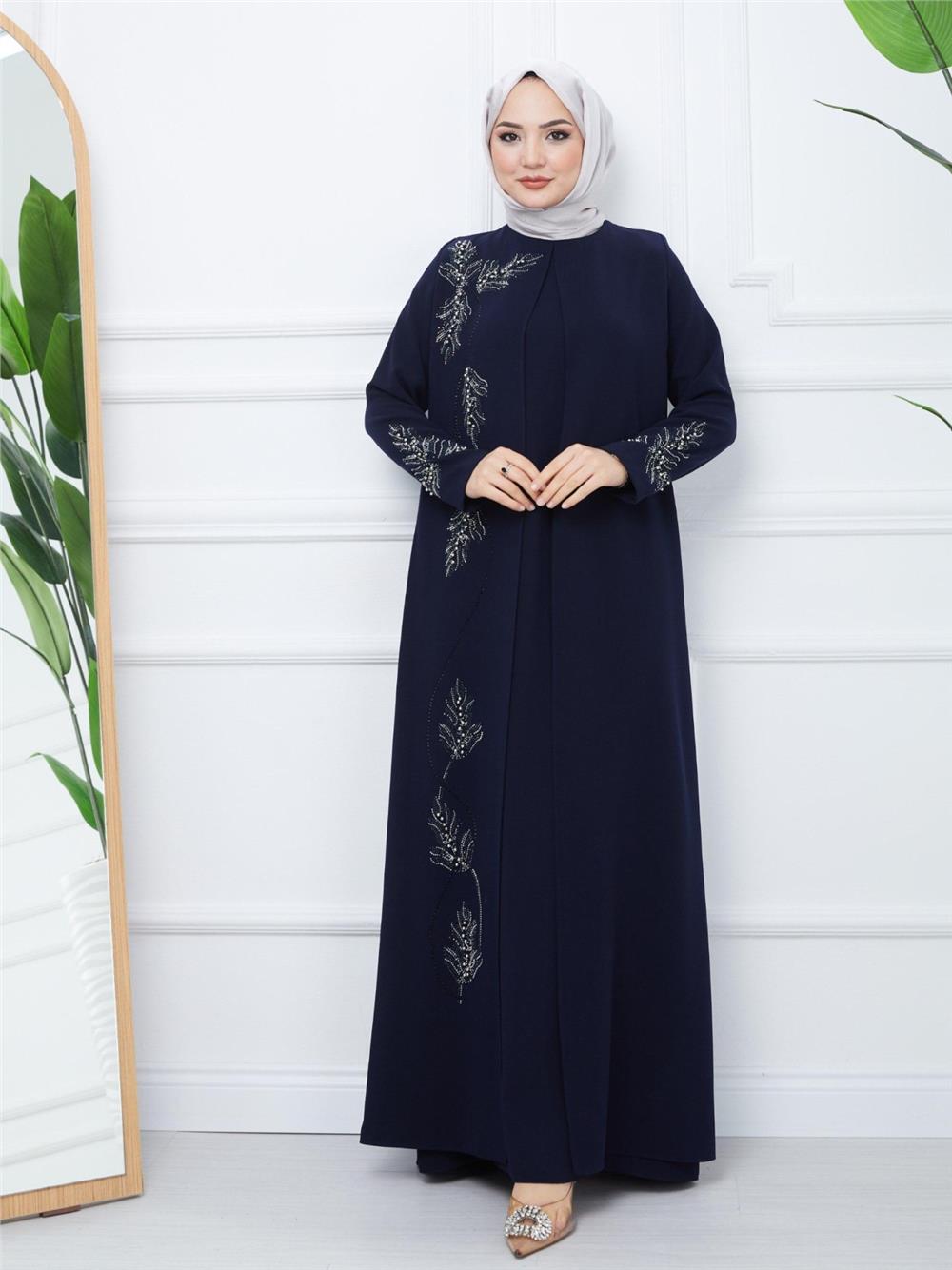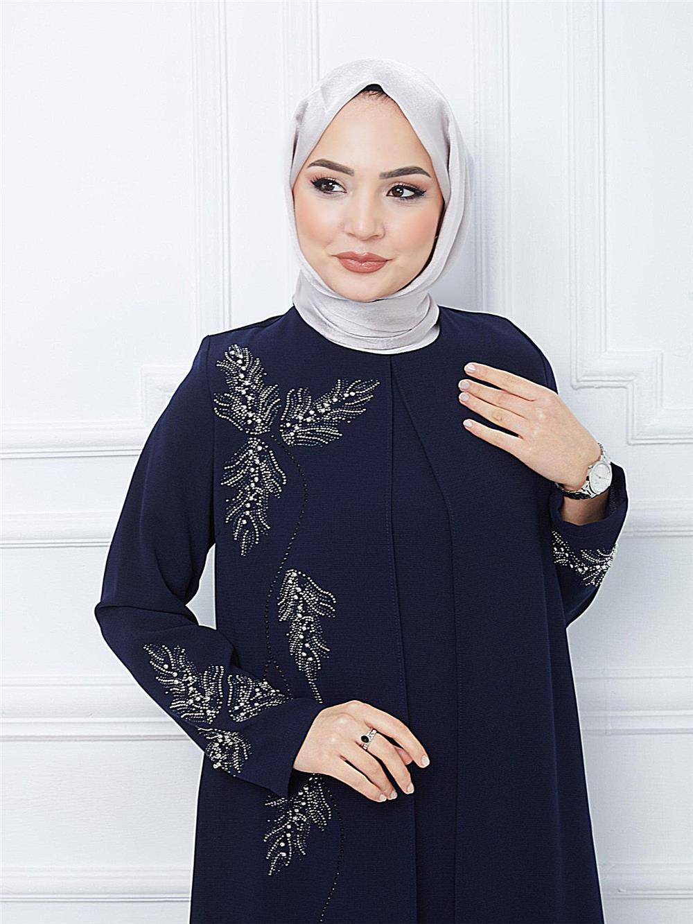 Boncuk Detaylı Çİft Kat Krep Elbise -Laci (412-2005-R03)
