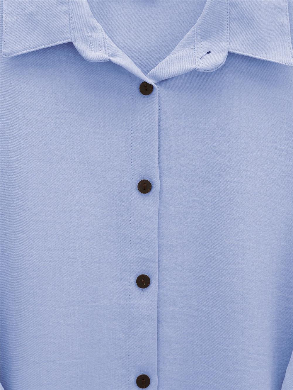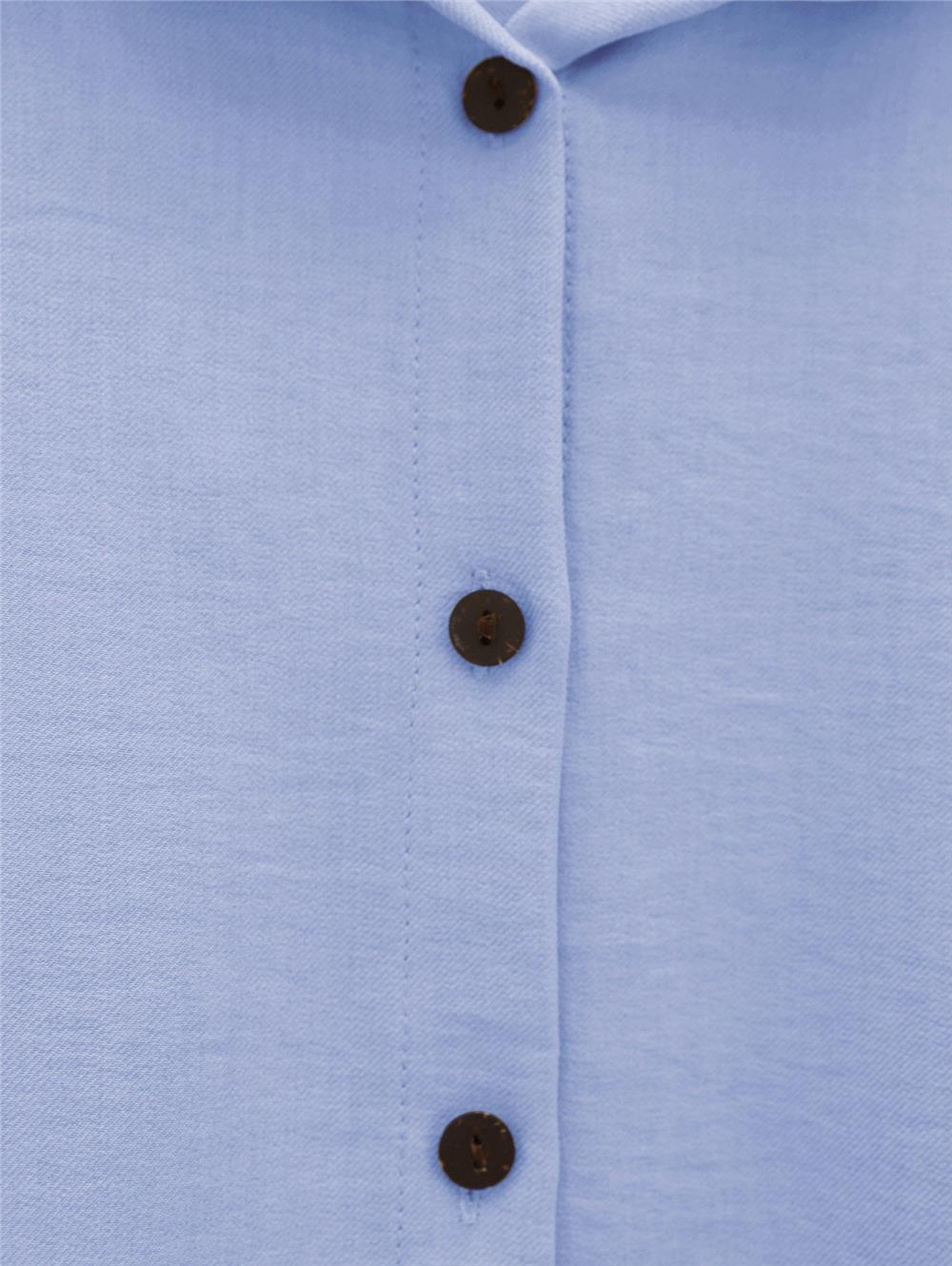 Boydan Düğmeli Pantolon Gömlek Keten Takım -Bebe Mavi (138-6622-R32)
