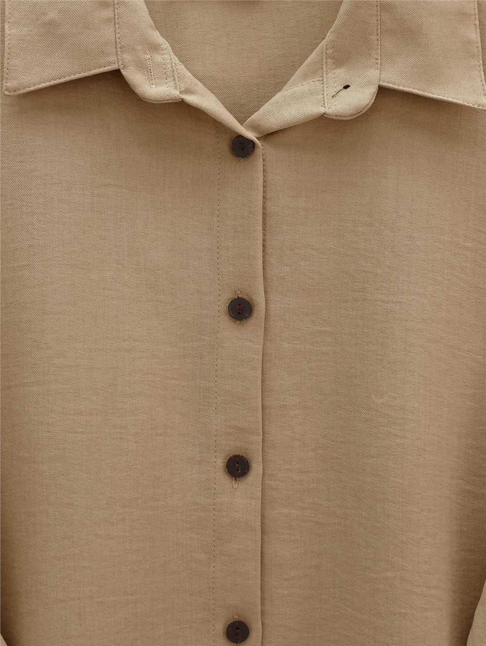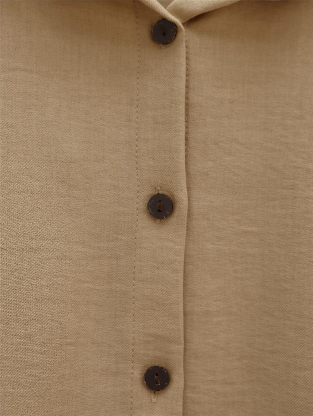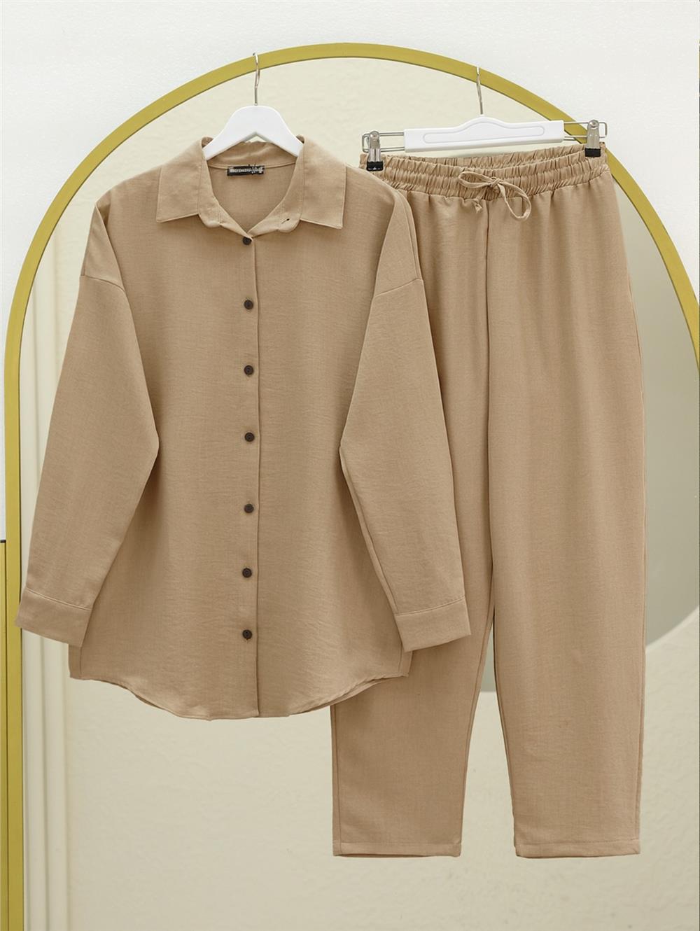 Boydan Düğmeli Pantolon Gömlek Keten Takım -Vizon (138-6622-R23)