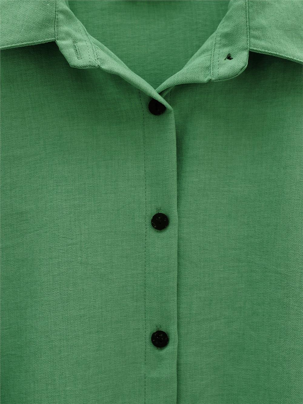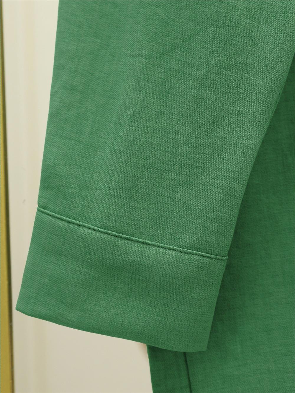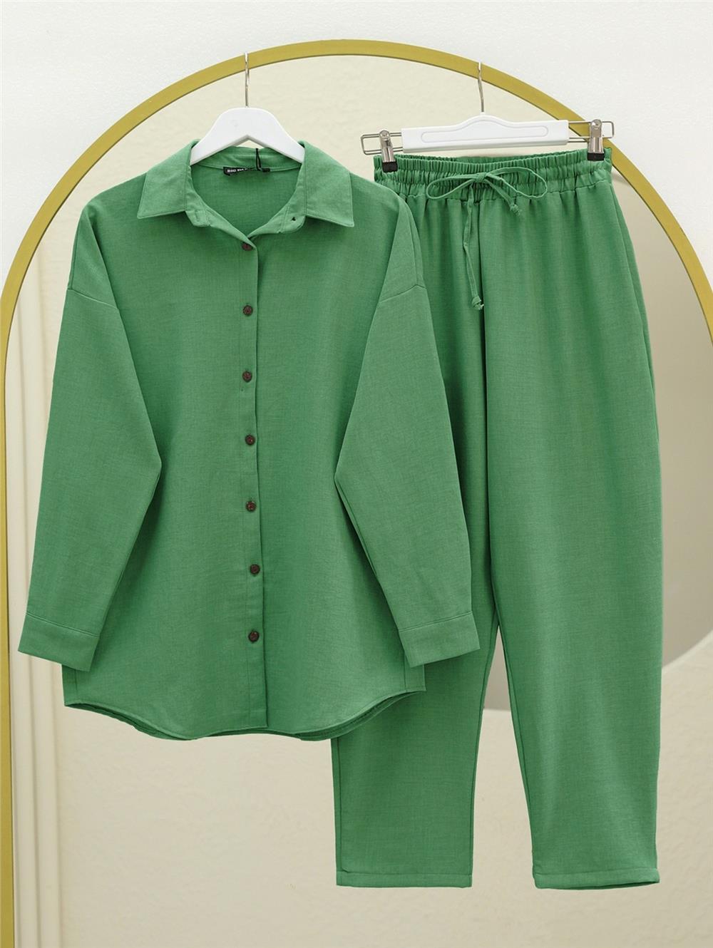 Boydan Düğmeli Pantolon Gömlek Keten Takım -Yeşil (138-6622-R35)