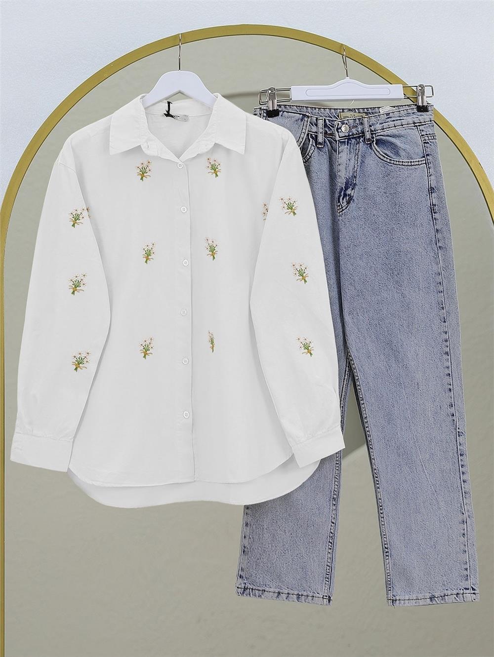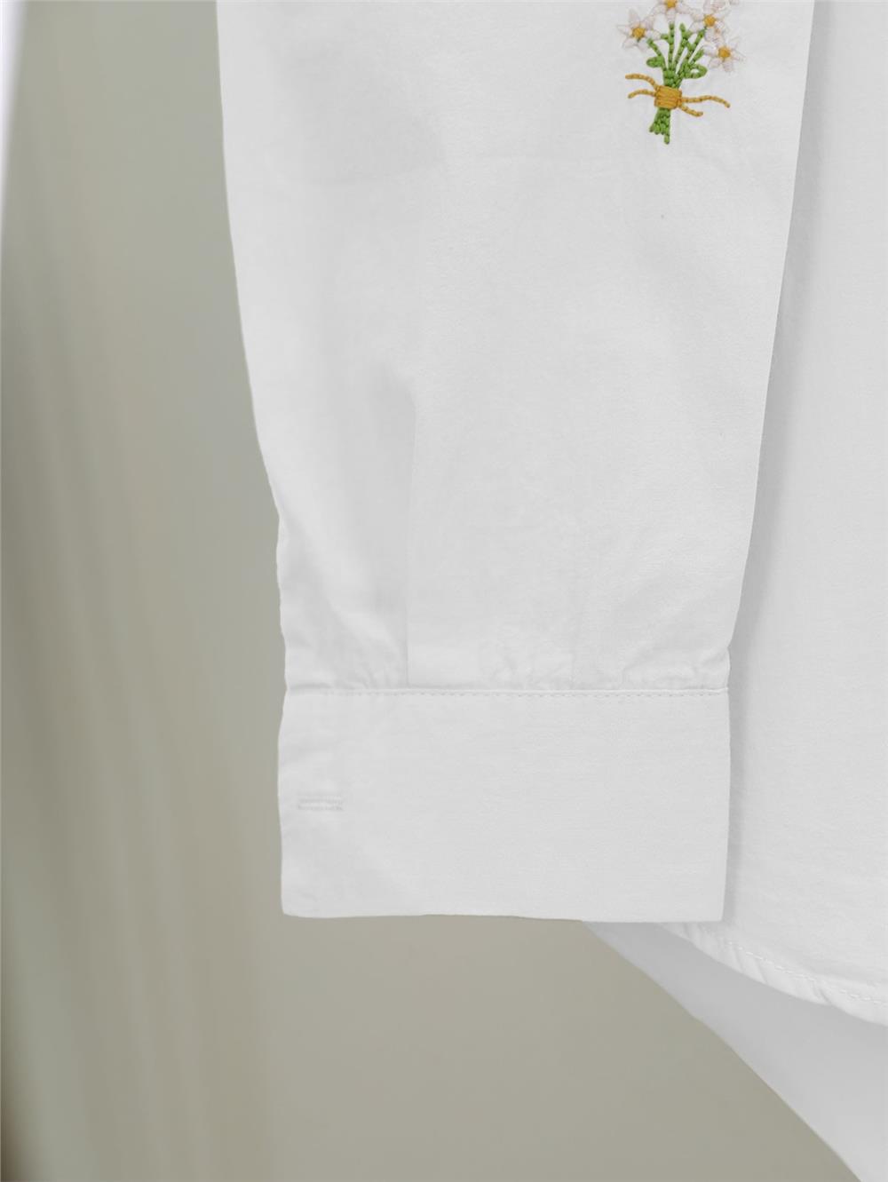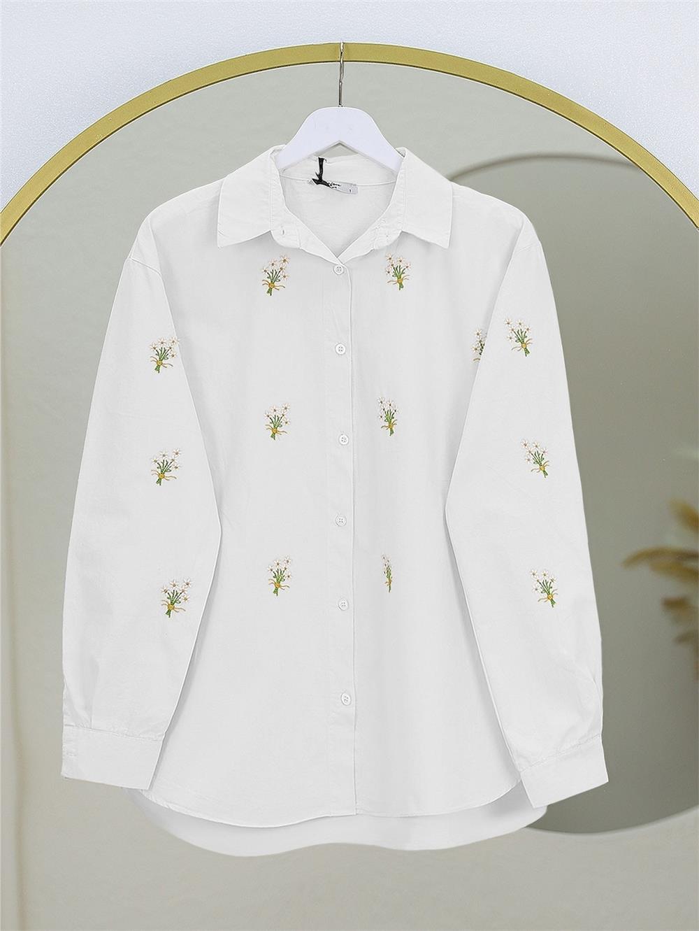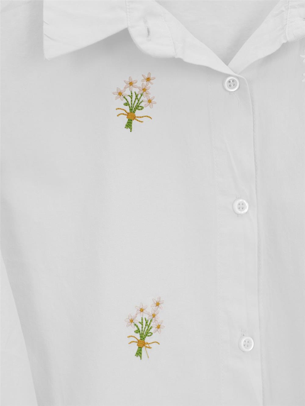 Buket Çiçek Detaylı Arkası Uzun Gömlek -Beyaz (403-10054-R02)