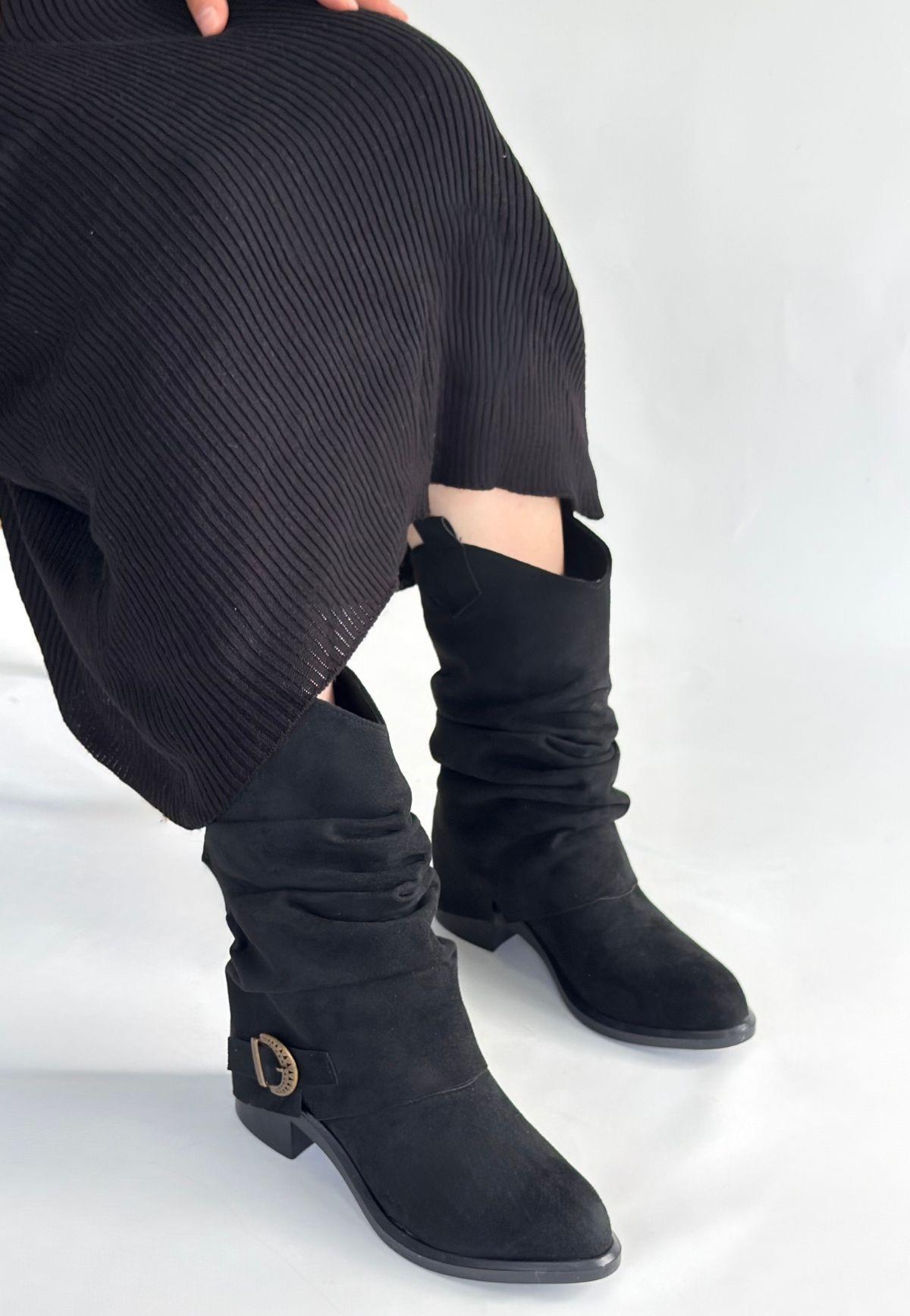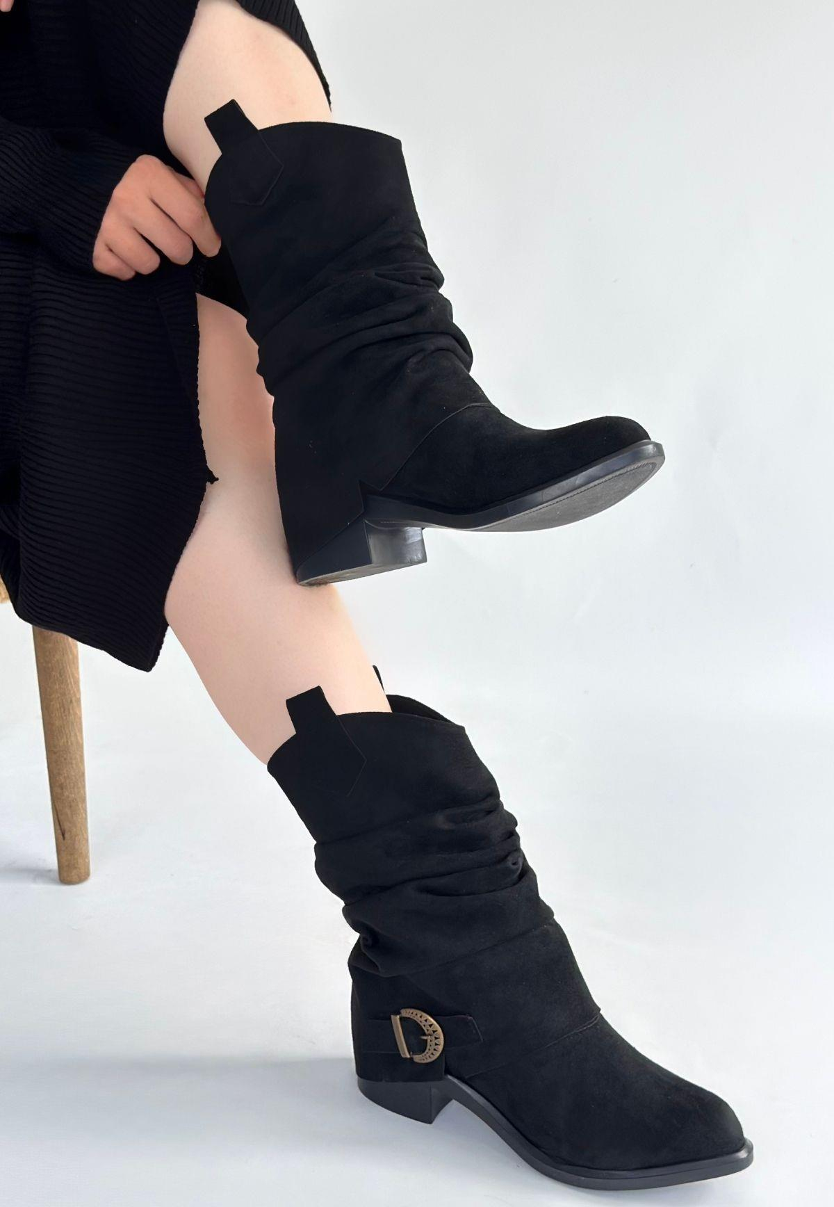 Canty Siyah Süet Körüklü Topuklu Çizme (SRK-KDN-CZM-265929)