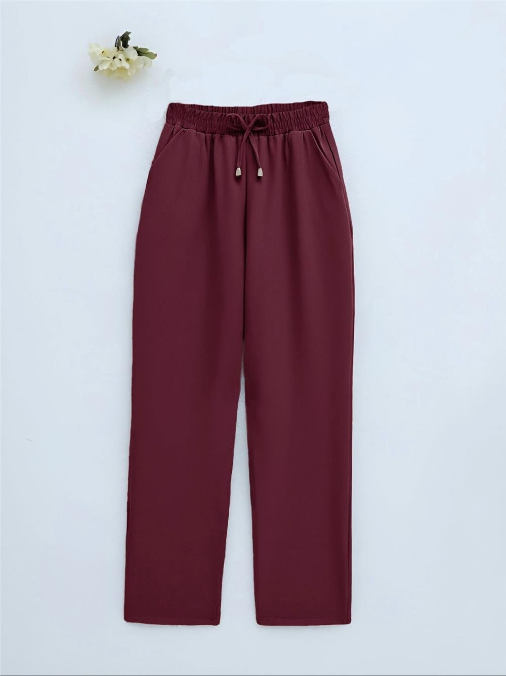 Çift Cepli Beli Lastikli Bağcık Detaylı Pantolon -Bordo (326-9093-R04)