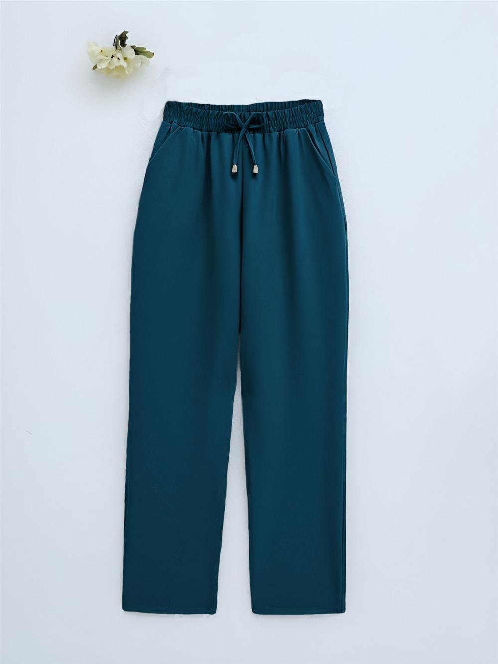 Çift Cepli Beli Lastikli Bağcık Detaylı Pantolon -Zümrüt (326-9093-R17)