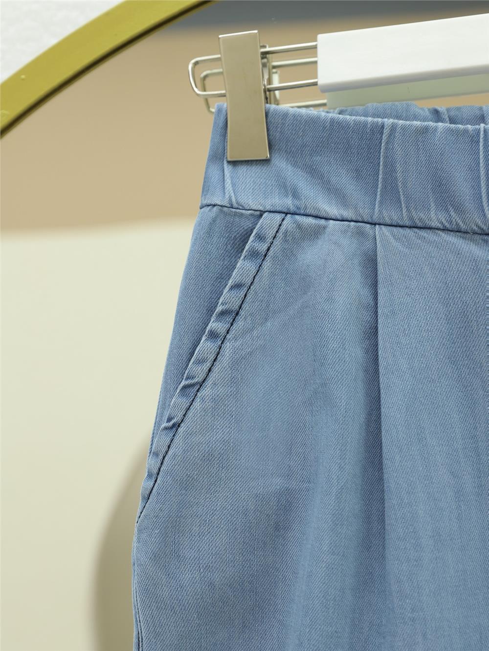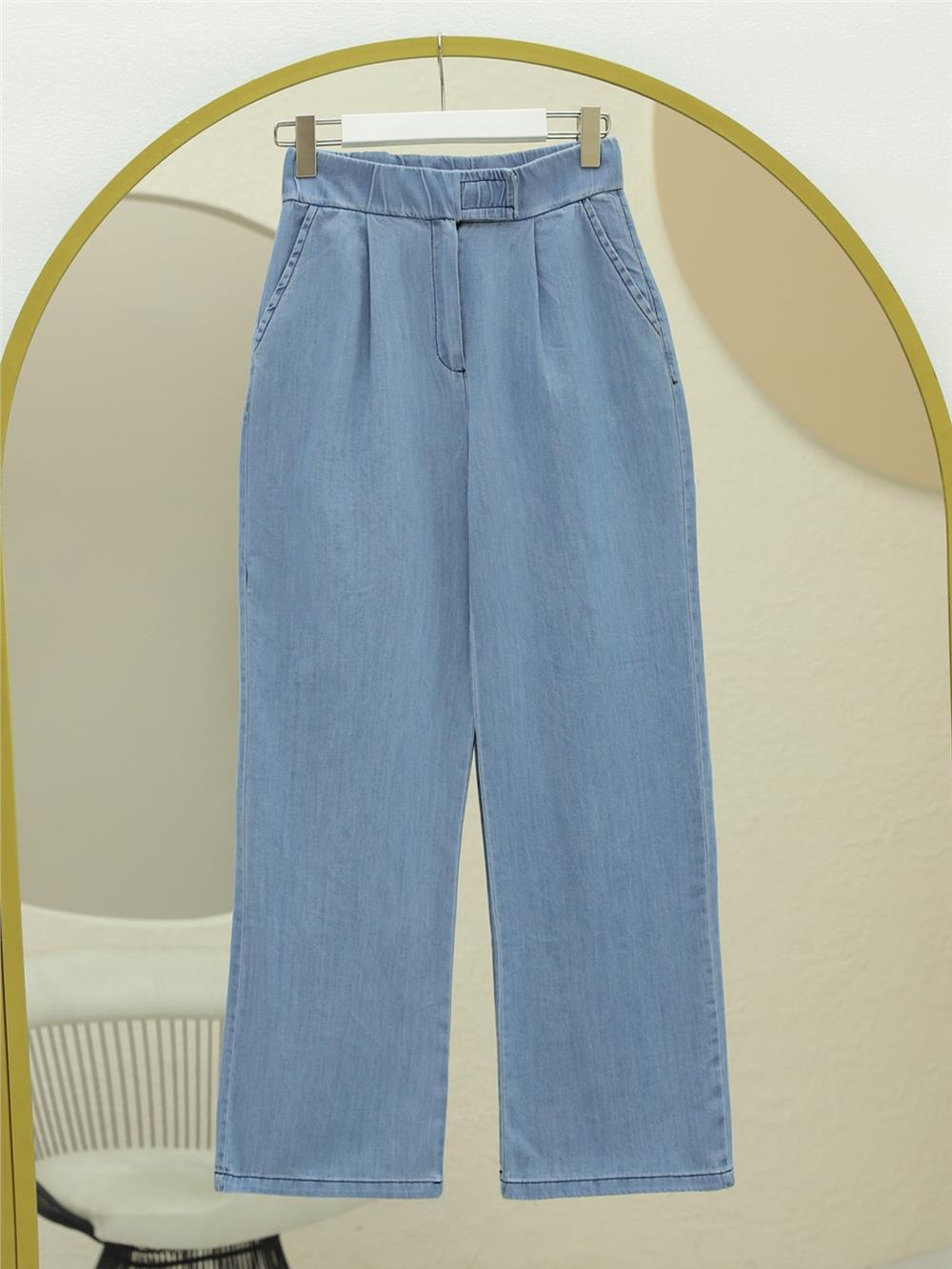 Çift Cepli Beli Lastikli Cırtlı Pileli Pantolon -Açık Mavi (417-17852-R25)