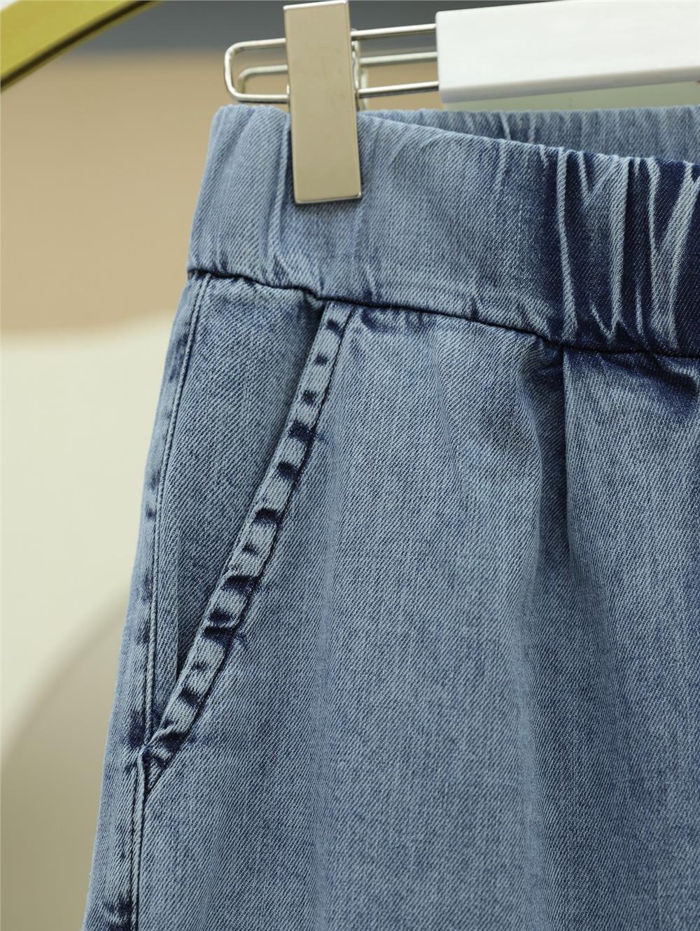 Çift Cepli Beli Lastikli Cırtlı Pileli Pantolon -Buz Mavi (417-17852-R37)