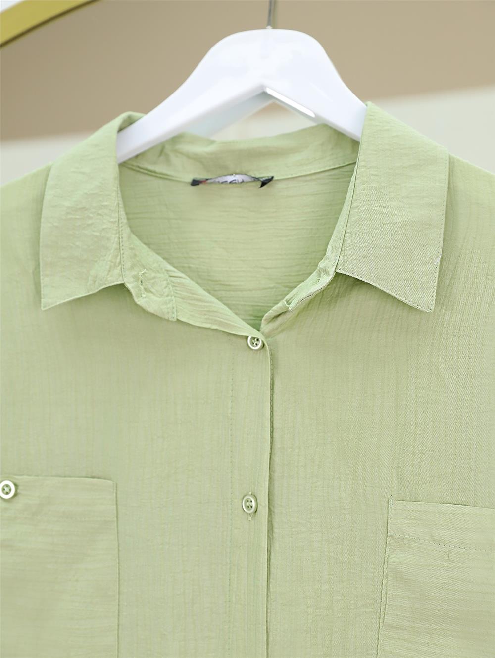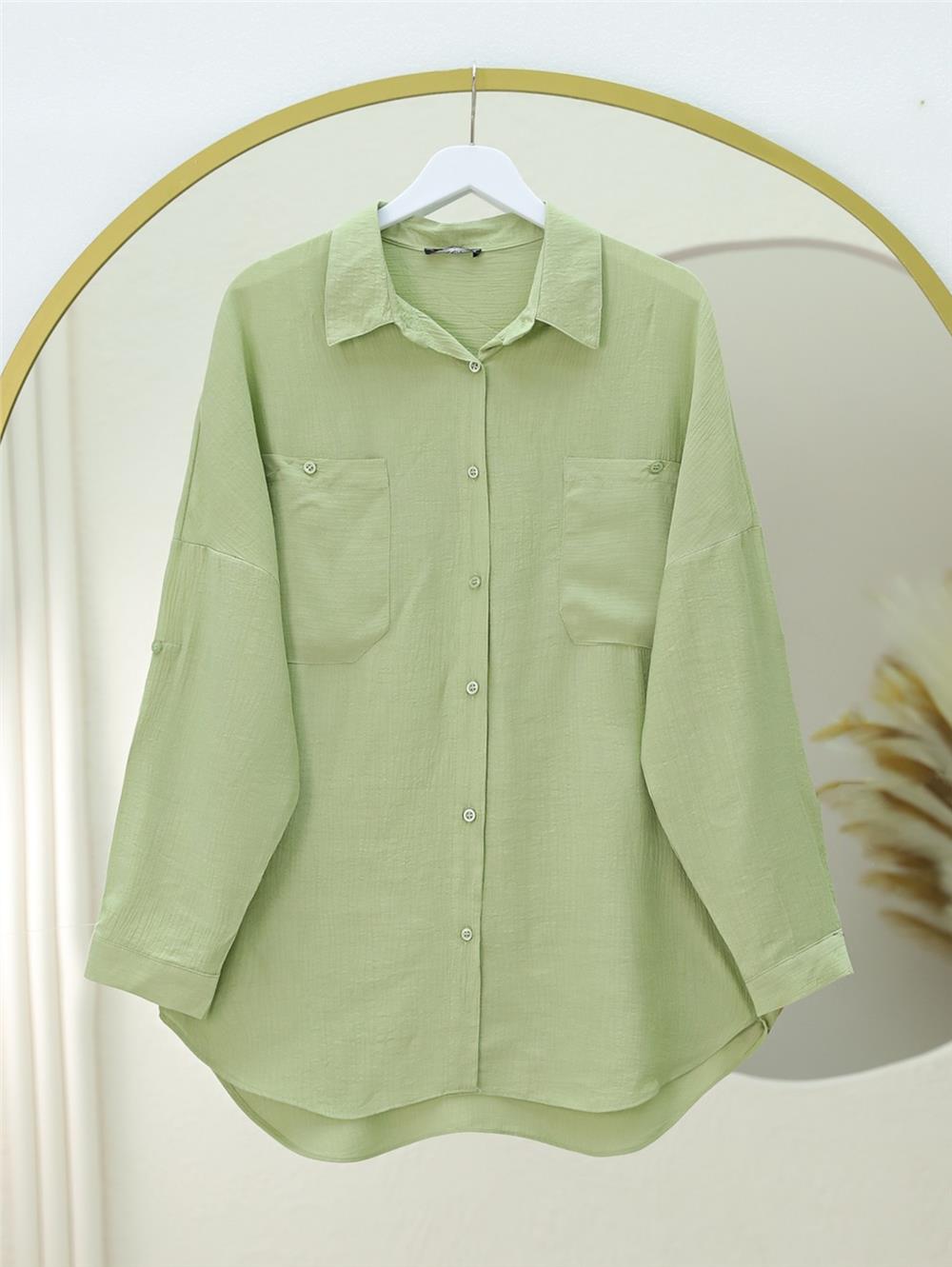 Çift Cepli Oval Kesim Kolu Katlamalı Gömlek Tunik -Çağla Y. (317-2420-R70)