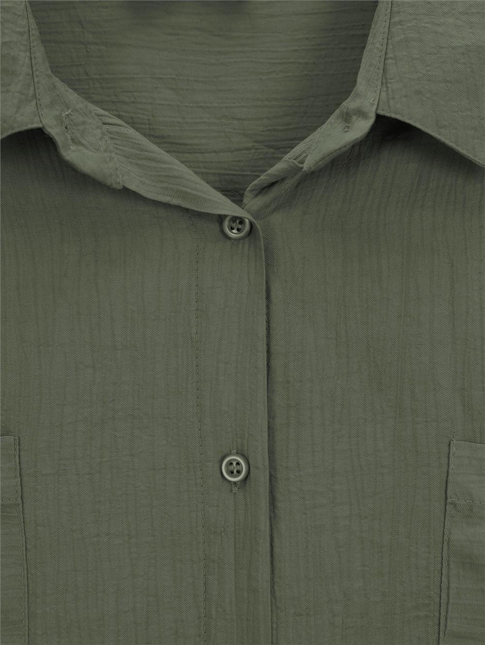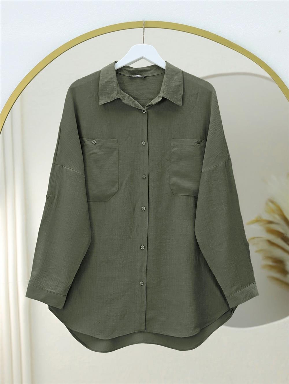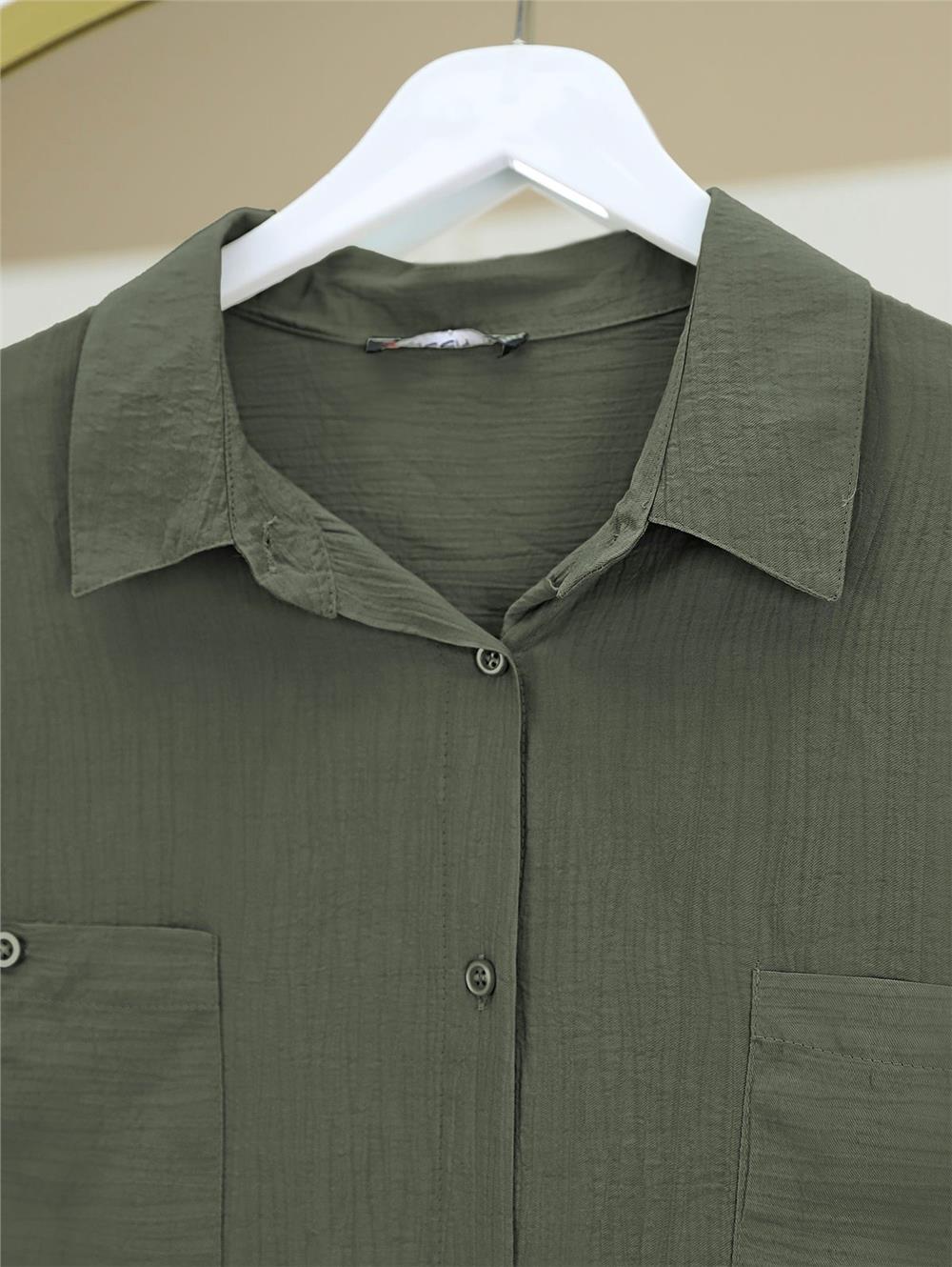 Çift Cepli Oval Kesim Kolu Katlamalı Gömlek Tunik -Haki (317-2420-R05)