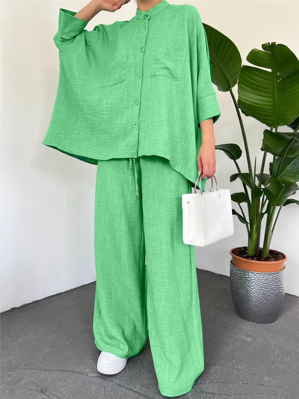 Double Pocket Half Bat Sleeve Casual Shirt Set -A.Green (246-1467-R69)