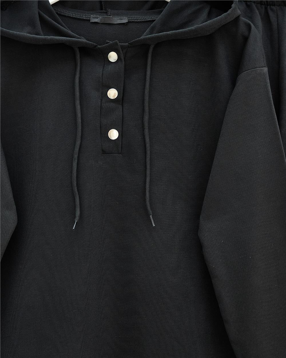 Double Combed Cotton Suit with Snap Fastener Crest Detail - Black (349-4092-R01)