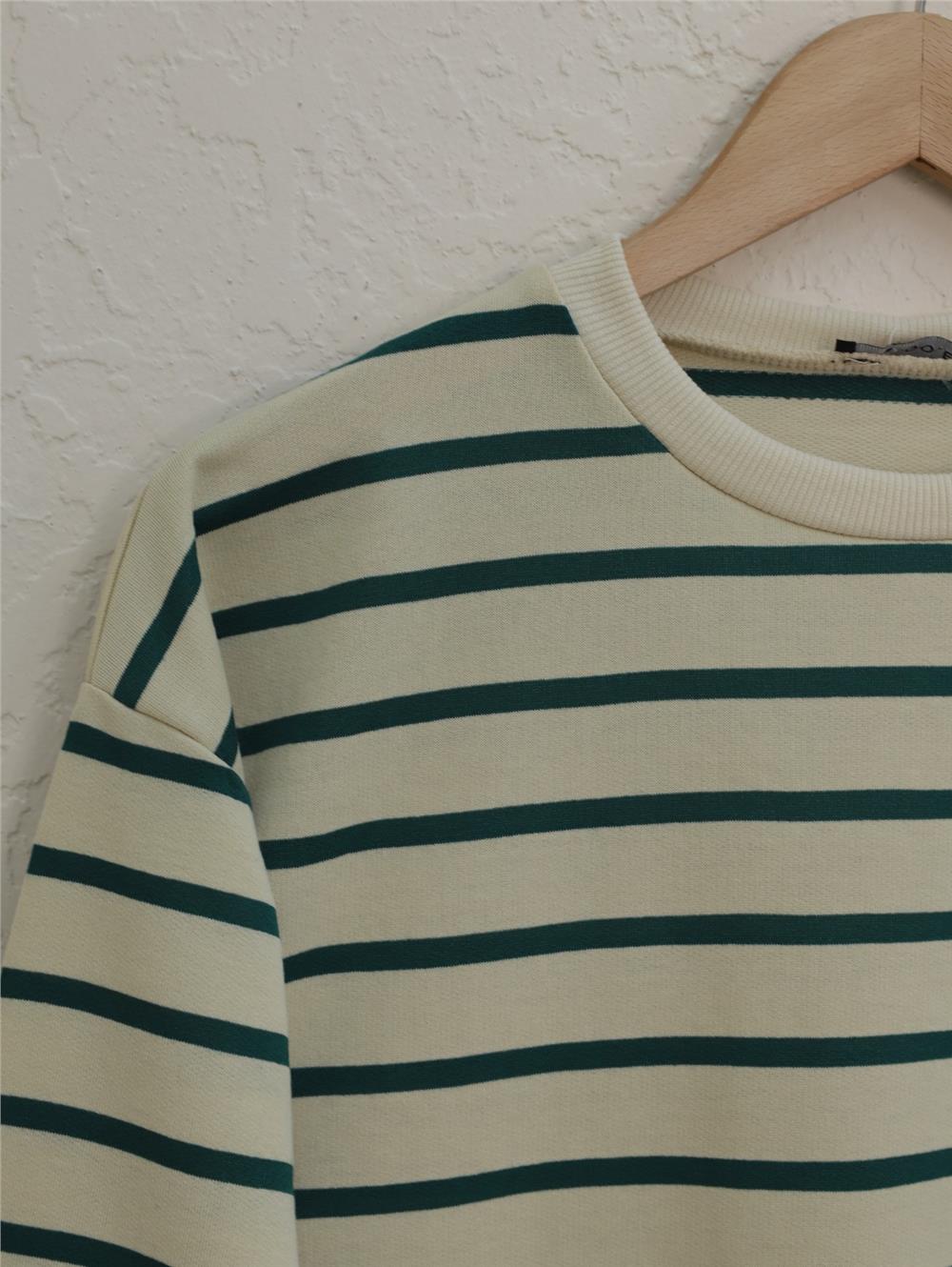 Striped Sleeves Ribbed Skirt Open Wortex Sweat - Green (349-4096-R35)