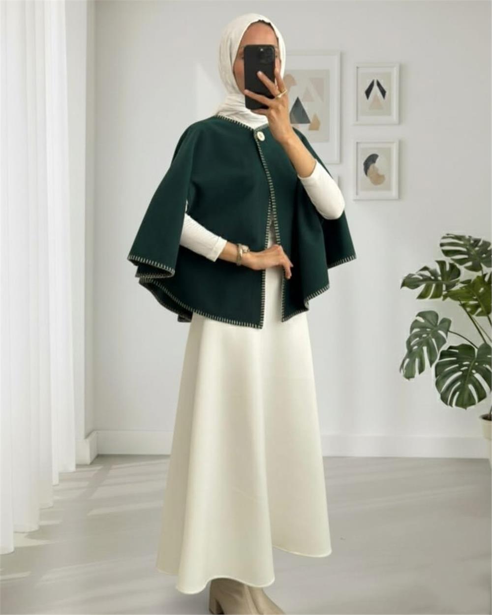 Çoban Dikişli Cepli Kaşe Panço -Zümrüt (307-0018-R17)