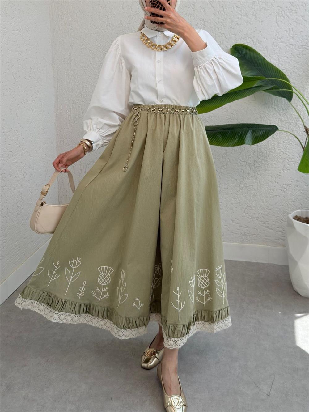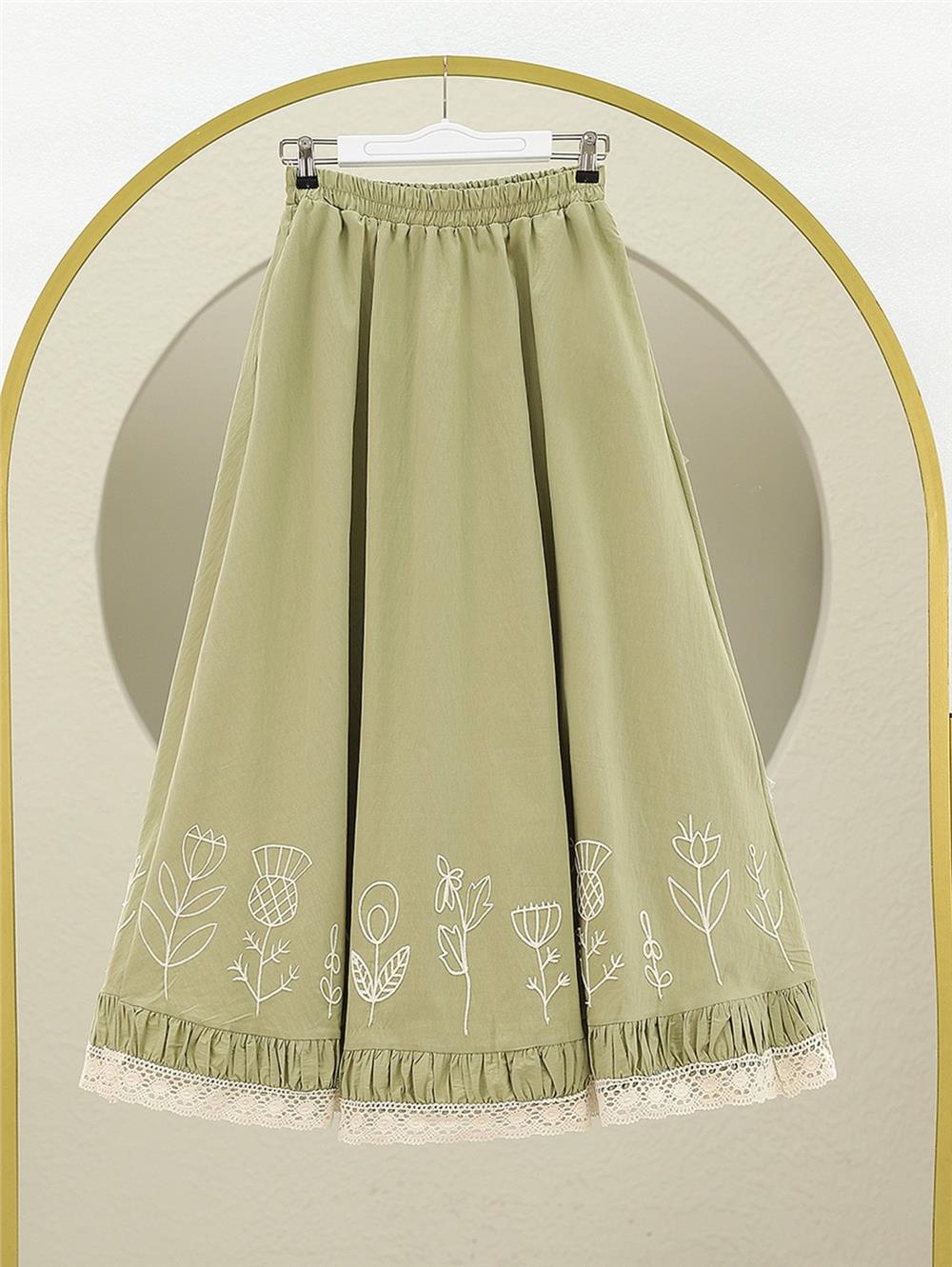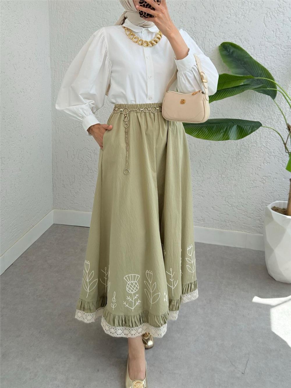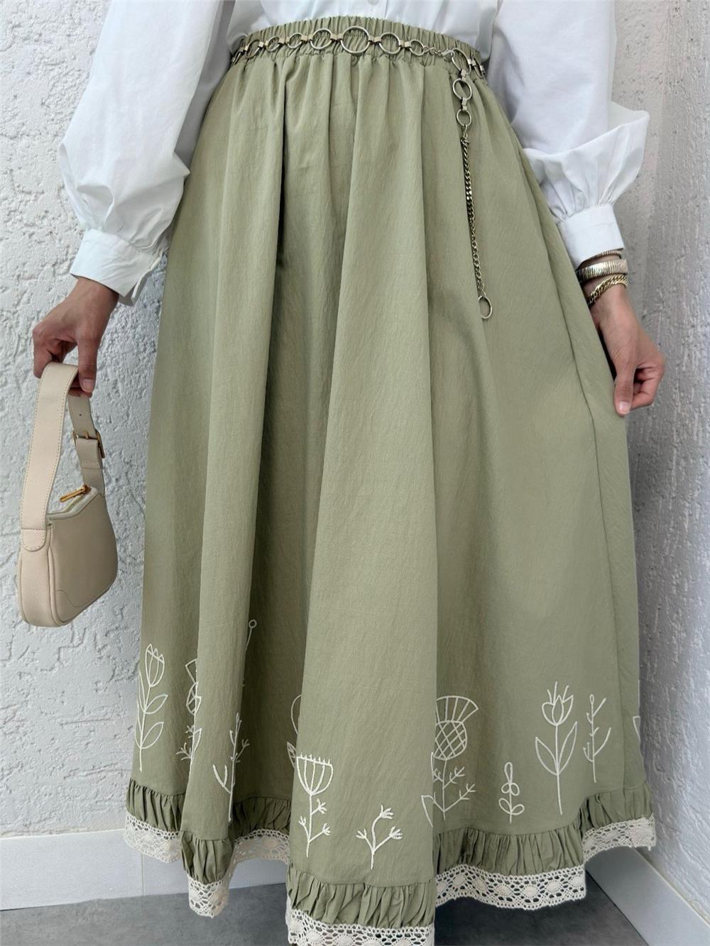 Dantel İşlemeli Beli Lastikli Etek -Çağla Y. (307-2329-R70)