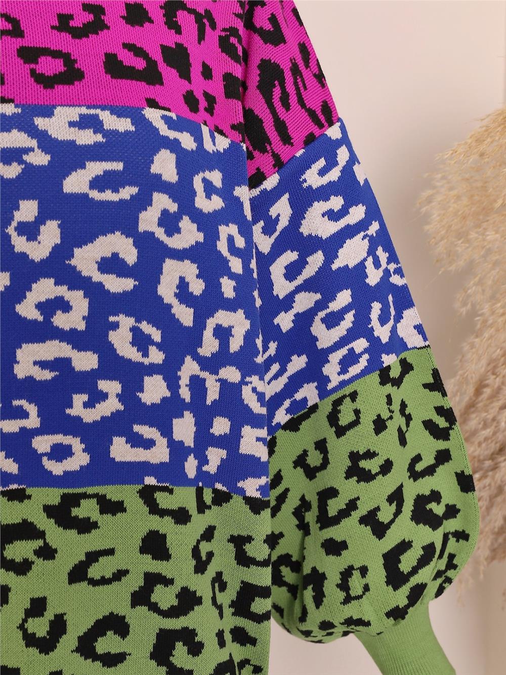 Our crew neck, off shoulder, oversize, leopard patterned knitwear tunic model is among the most popular models of the new season. p>