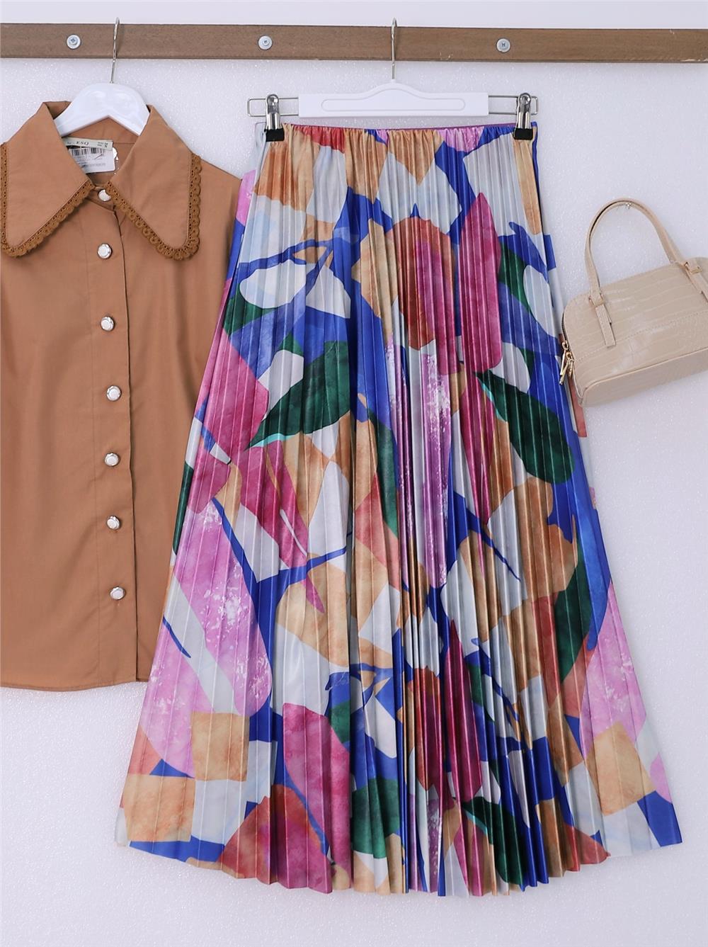 Our elastic waist, digitally printed, pleated, unlined skirt model is among the most popular models of the new season.
