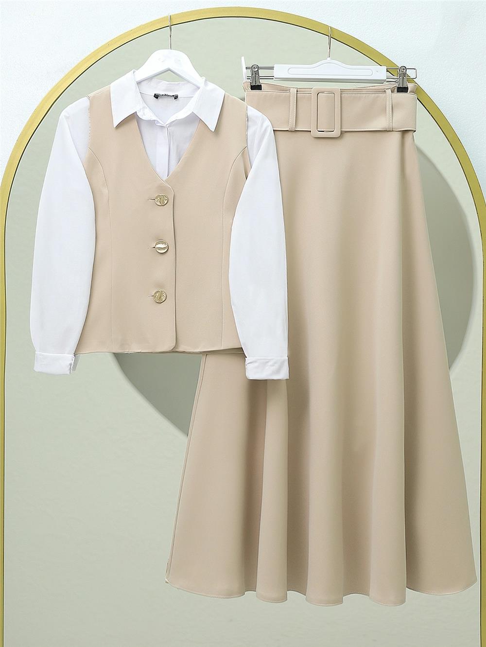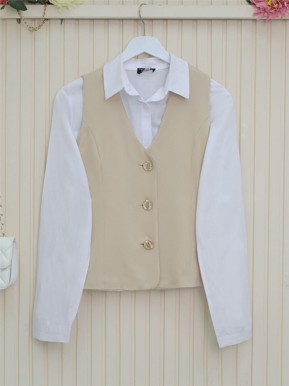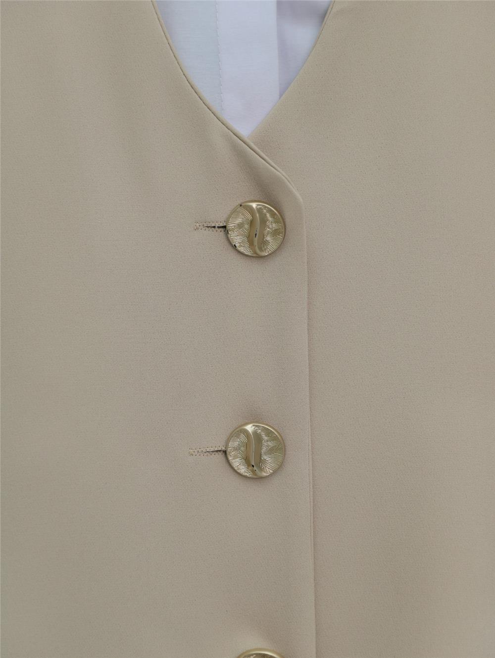 Düğmeli Astarlı Yelek -Bej (186-690-R56)
