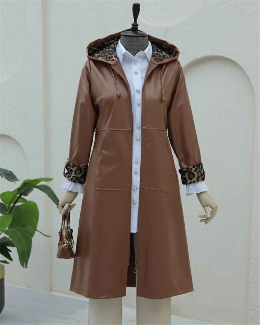 Fermuarlı, kolu katlamalı, deri kap; şıklığı ve zarafeti bir arada sunar. Fermuar detayı ve katlanabilir kol tasarımıyla modern bir hava yaratan bu deri kap, soğuk havalarda sizi sıcak tutarken, tarzınıza sofistike bir dokunuş ekler. Hem şık hem de fonksiyonel olan bu kap, rahat kesimiyle günlük kullanım için idealdir. Her ortamda şıklığınızı yansıtan bu deri kap, her gardıroba mükemmel bir eklemedir.