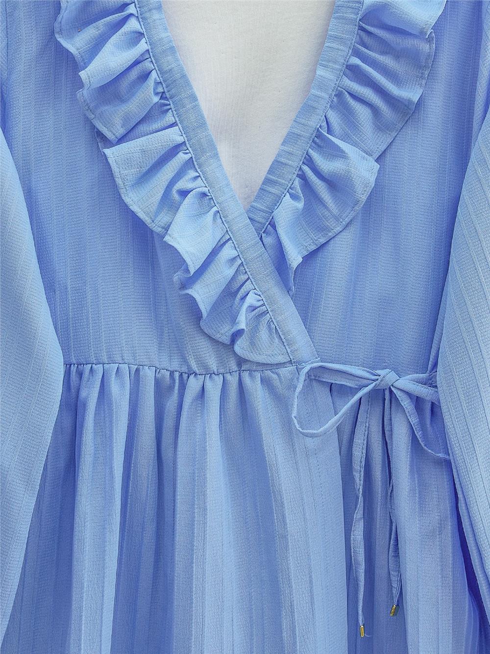 Fırfırlı Önü Bağcıklı Kolu Lastikli Kimono -Mavi (398-1031-R31)