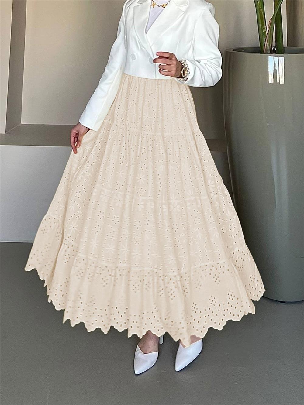Fisto İşlemeli Katlamalı Etek -Bej (144-1004-R56)
