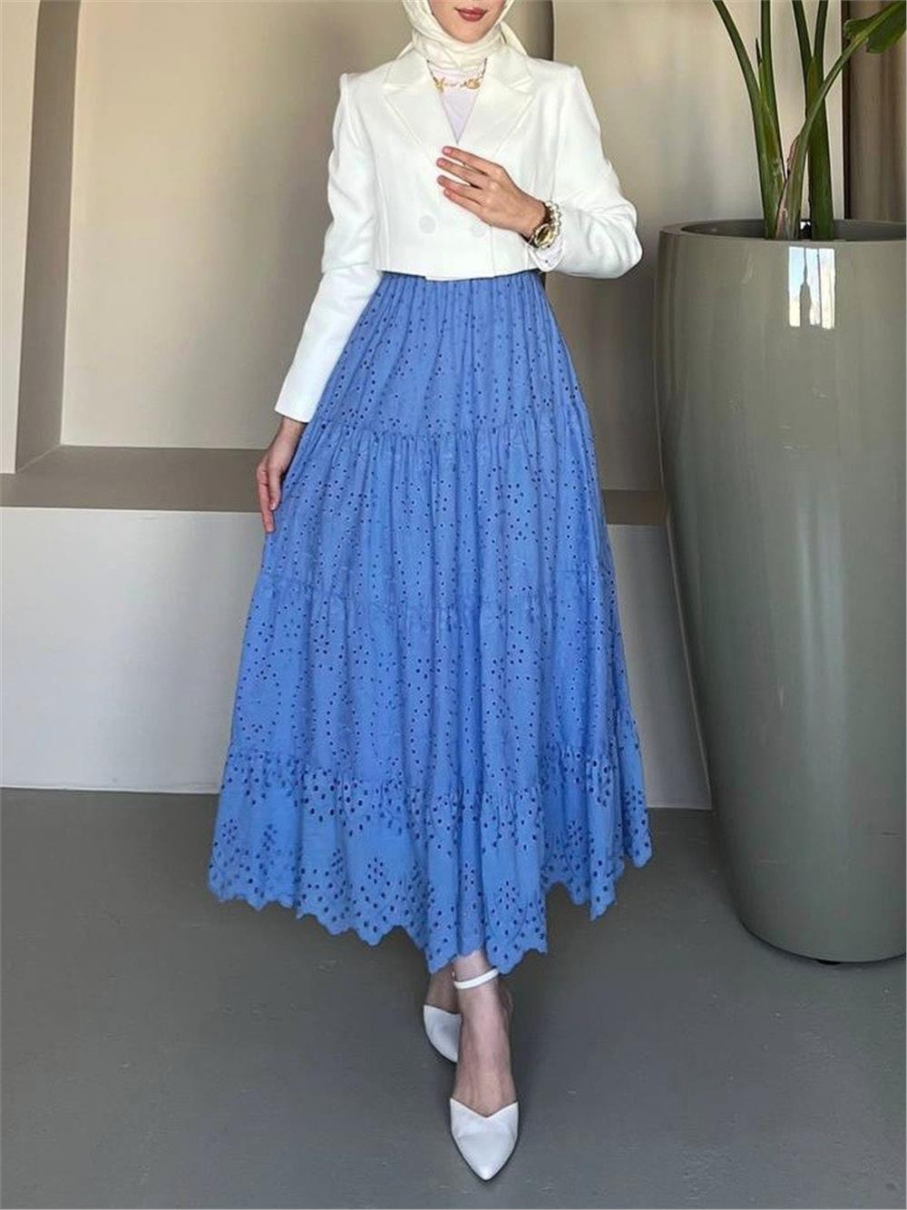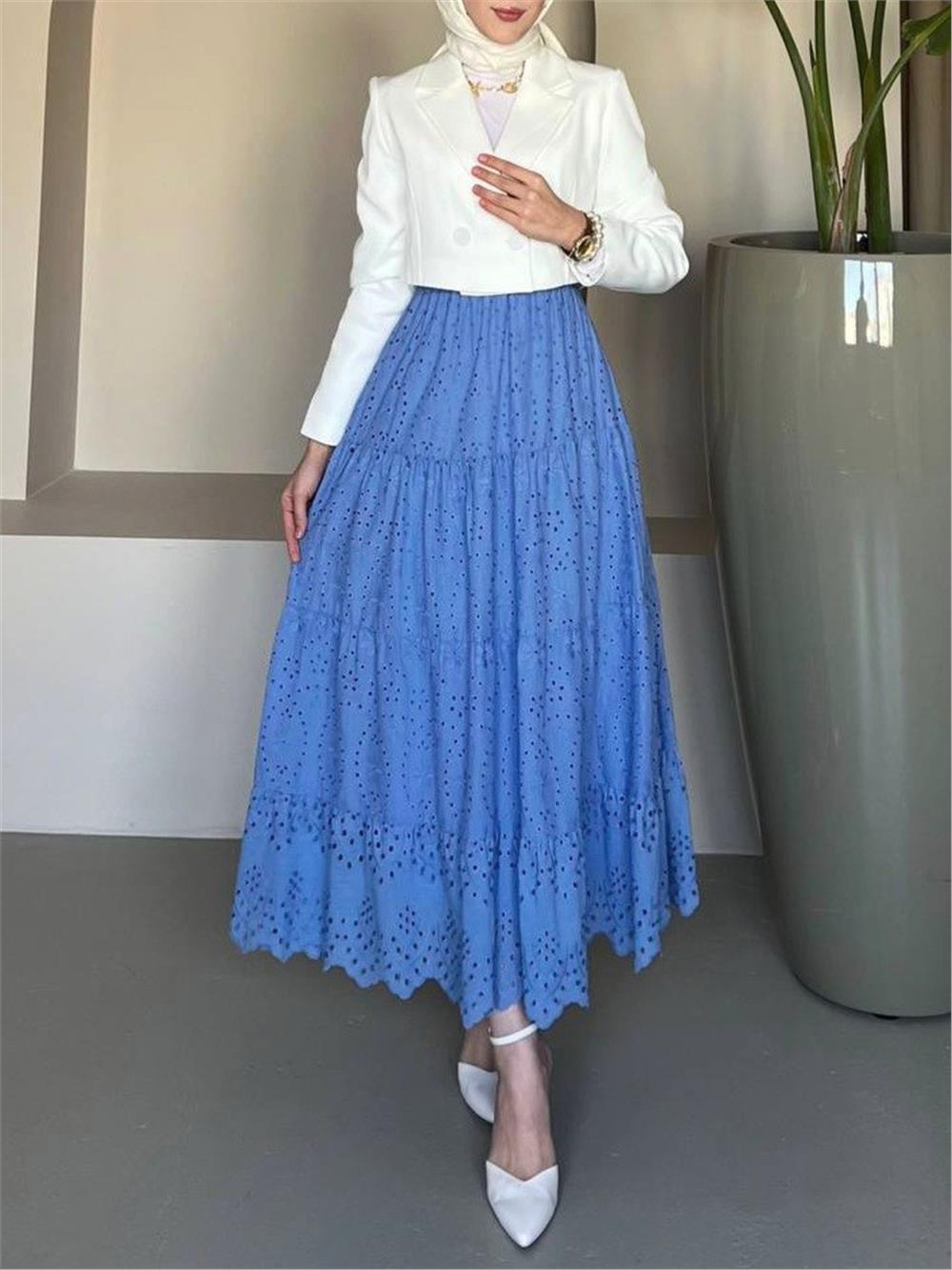 Fisto İşlemeli Katlamalı Etek -Mavi (144-1004-R31)