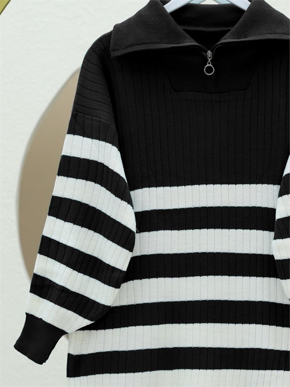 Fitilli Yarım Boğazlı Fermuarlı Triko Tunik -Siyah (295-3434-R01)