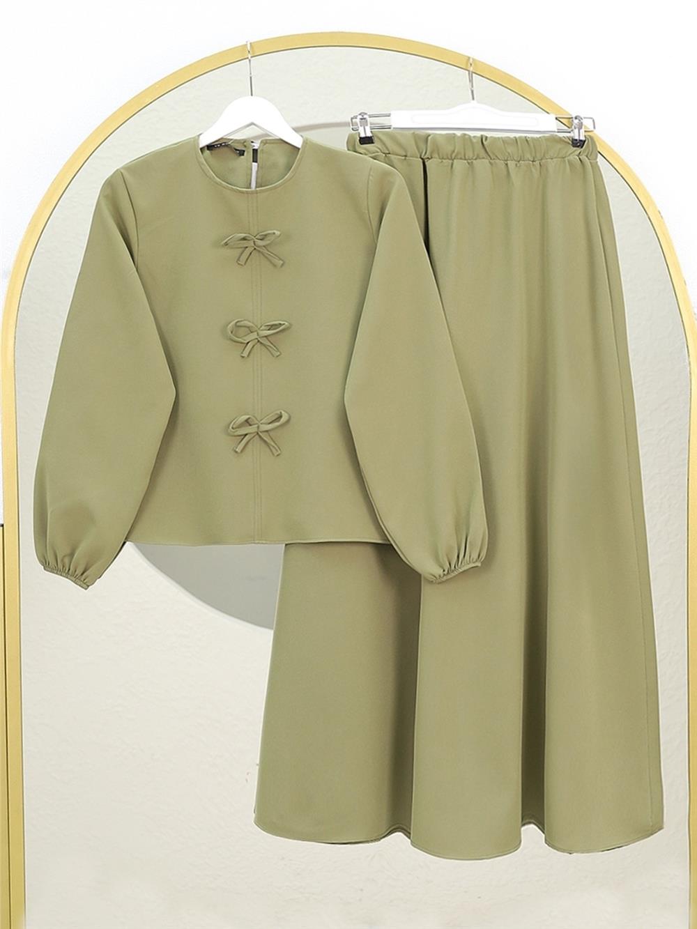 Fiyonk Detaylı Kolu Lastikli Etekli Takım -Haki (349-7014-R05)