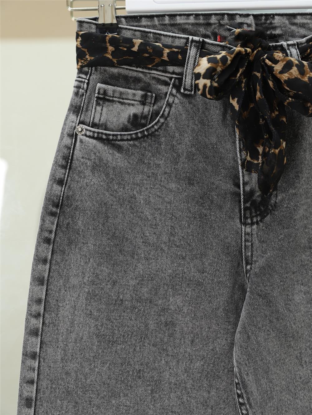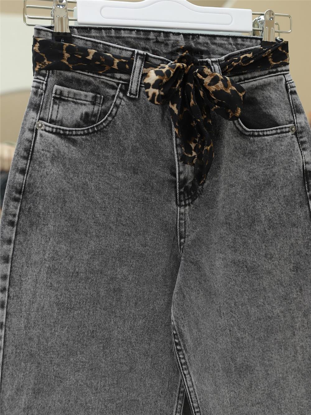 Fular Detaylı Palazzo Kot Pantolon -Füme (136-2207-R18)