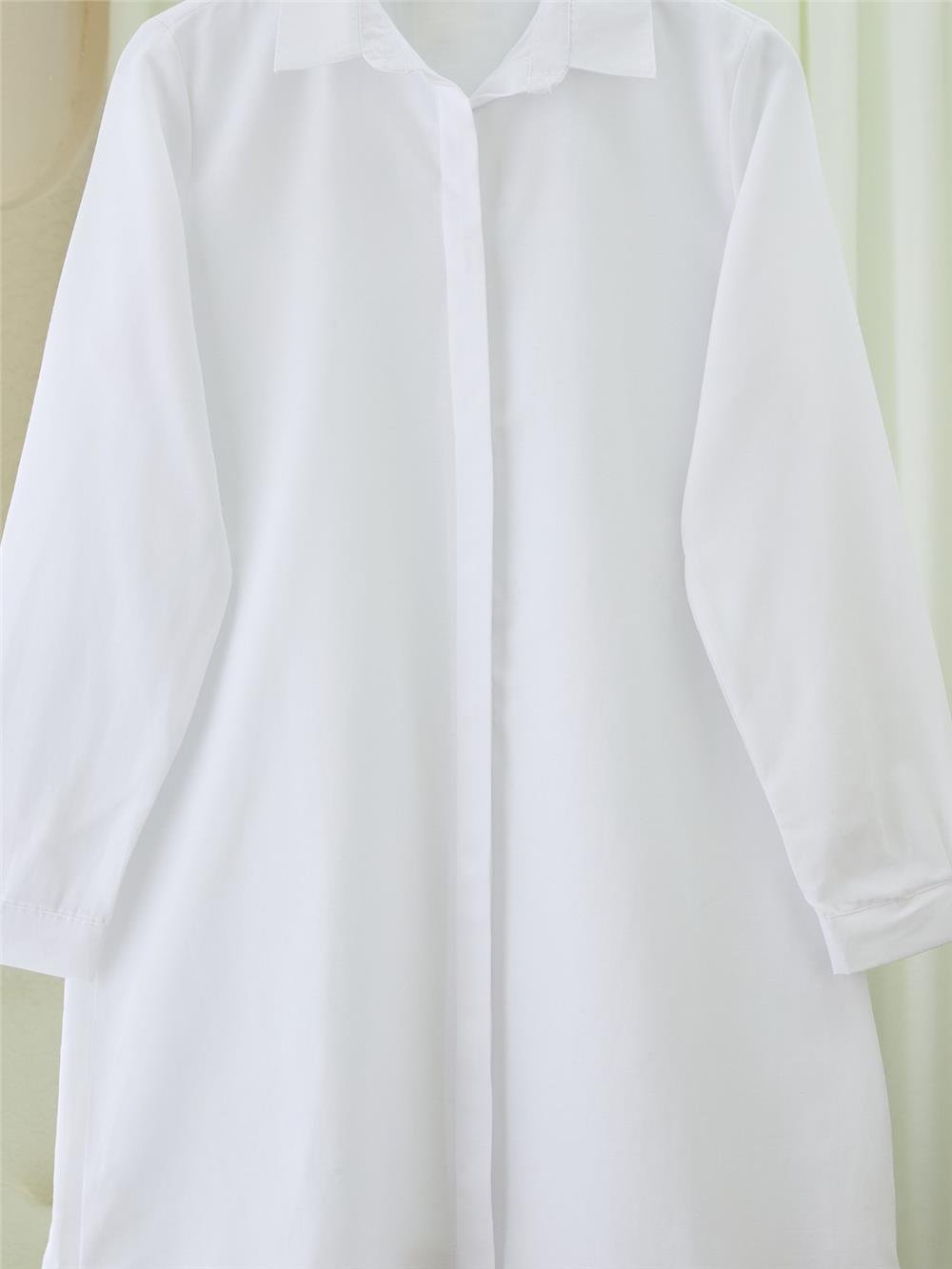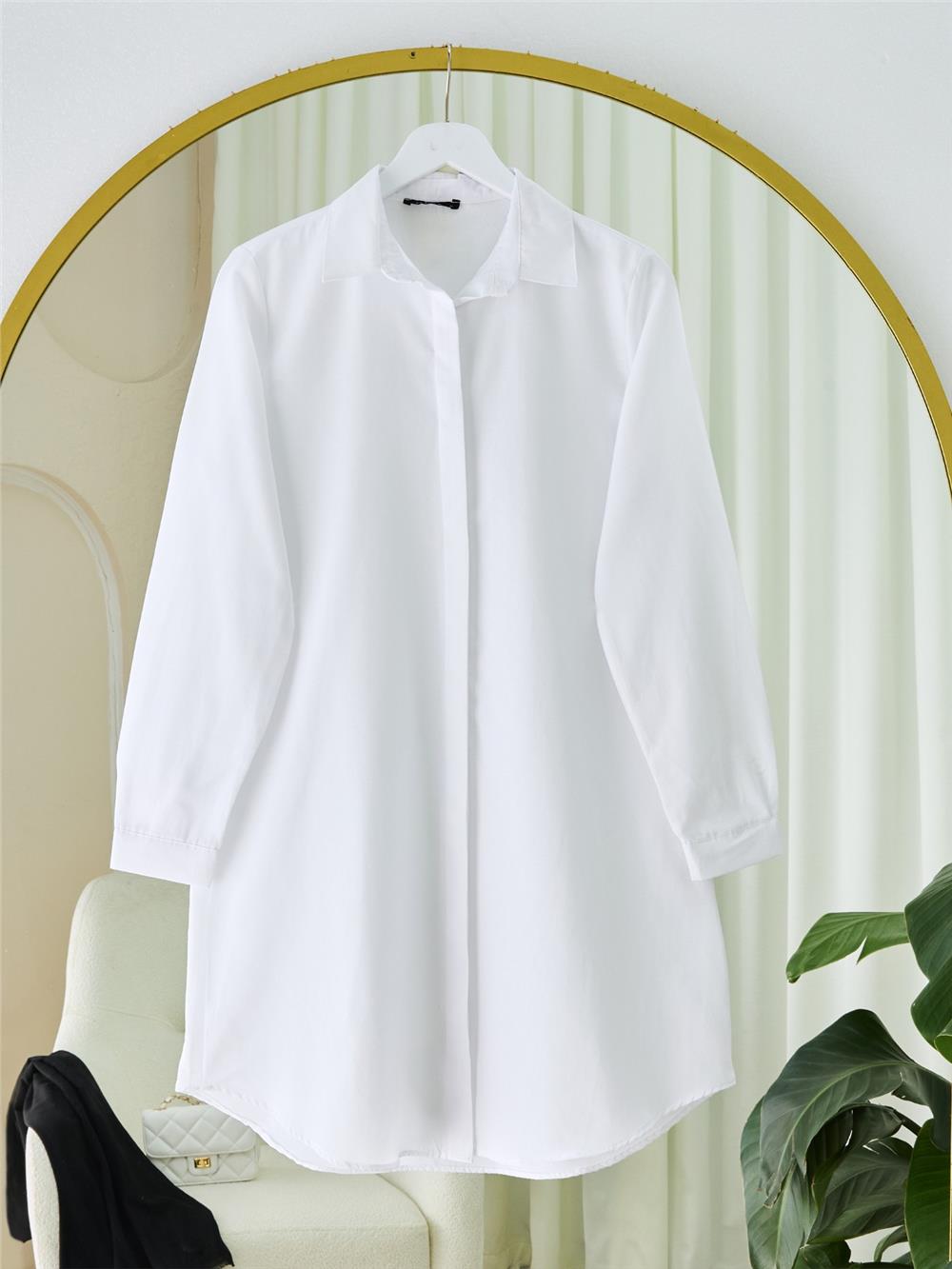 Gizli Düğmeli Oval Kesim Uzun Gömlek -Beyaz (349-5071-R02)