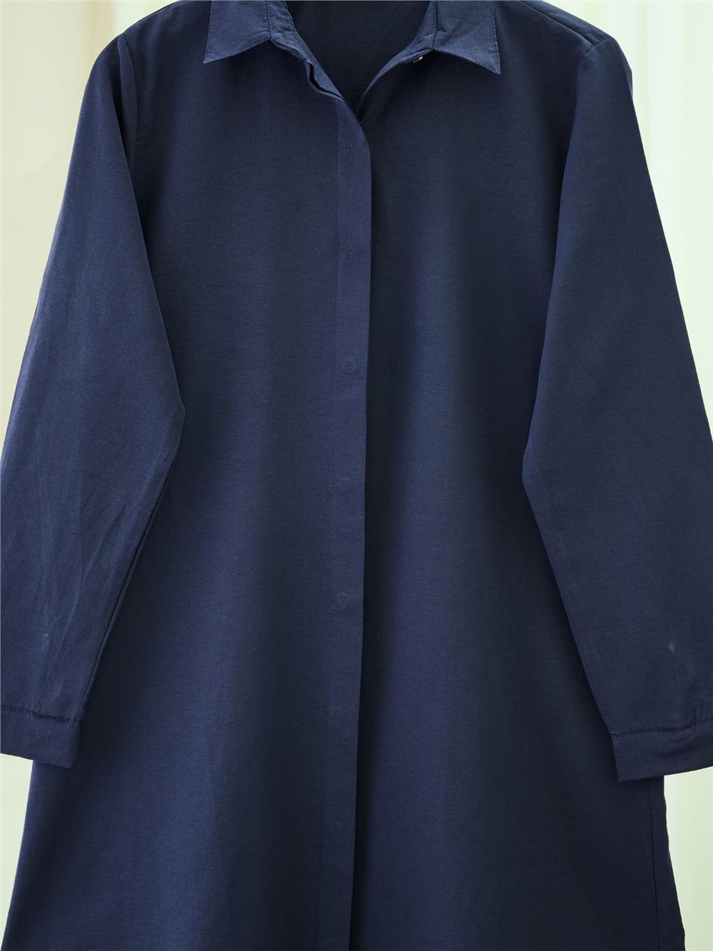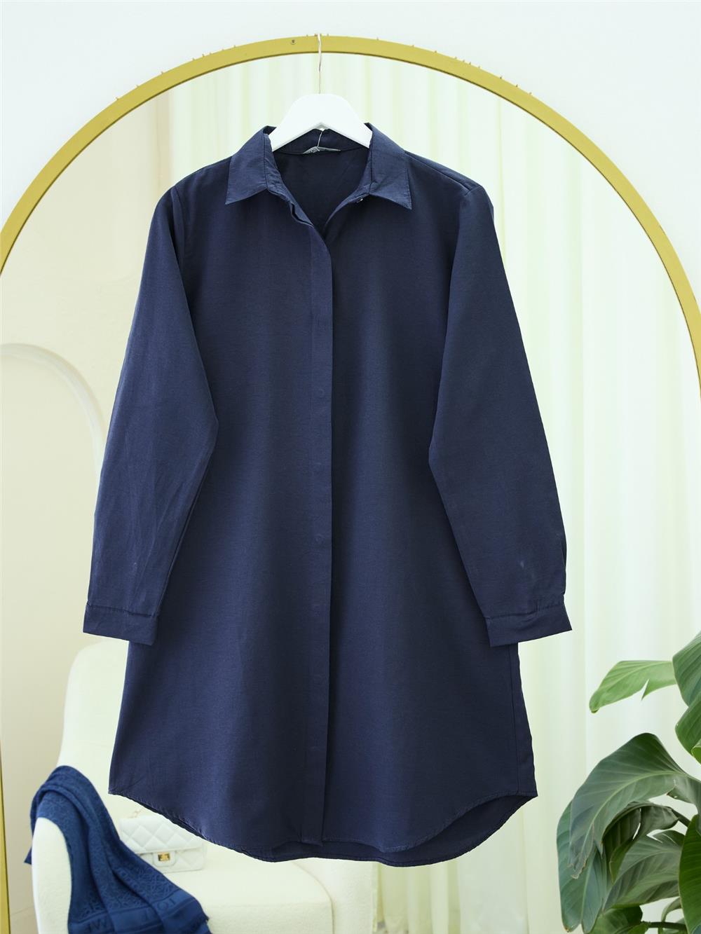Gizli Düğmeli Oval Kesim Uzun Gömlek -Laci (349-5071-R03)