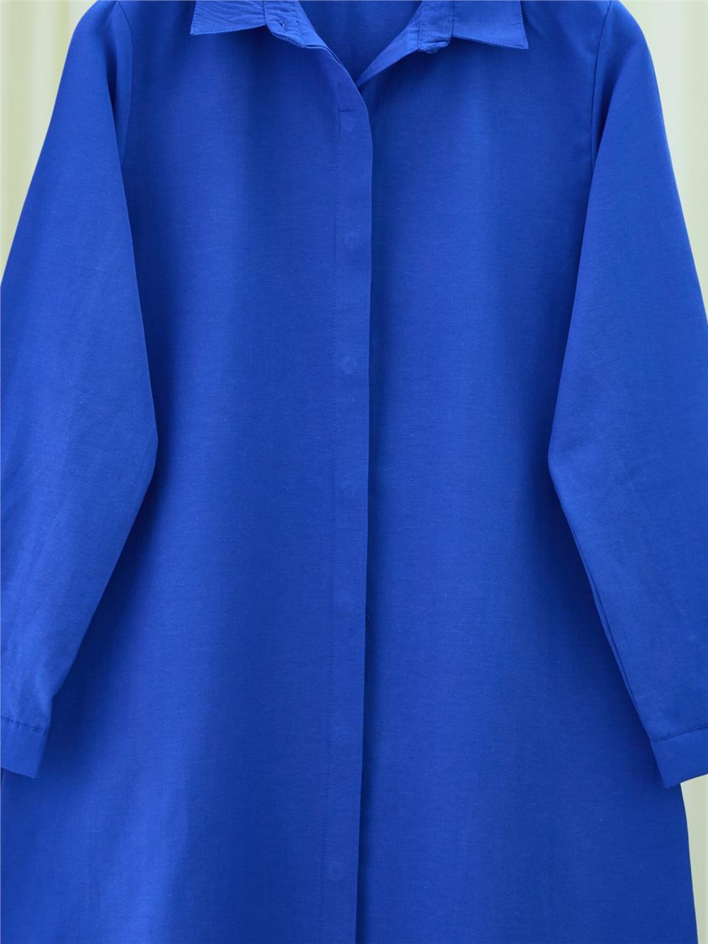 Gizli Düğmeli Oval Kesim Uzun Gömlek -Saks (349-5071-R10)