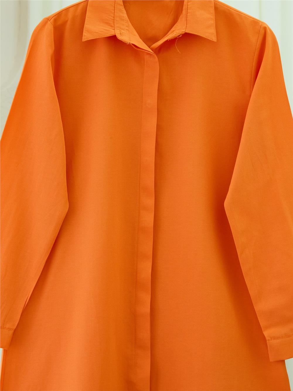 Gizli Düğmeli Oval Kesim Uzun Gömlek -Turuncu (349-5071-R16)