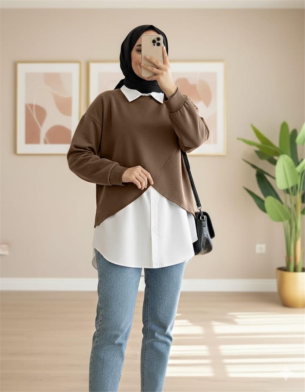 Gömlekli Bolerolu Oysho Üst Takım -Kahve (120-1625-R15)