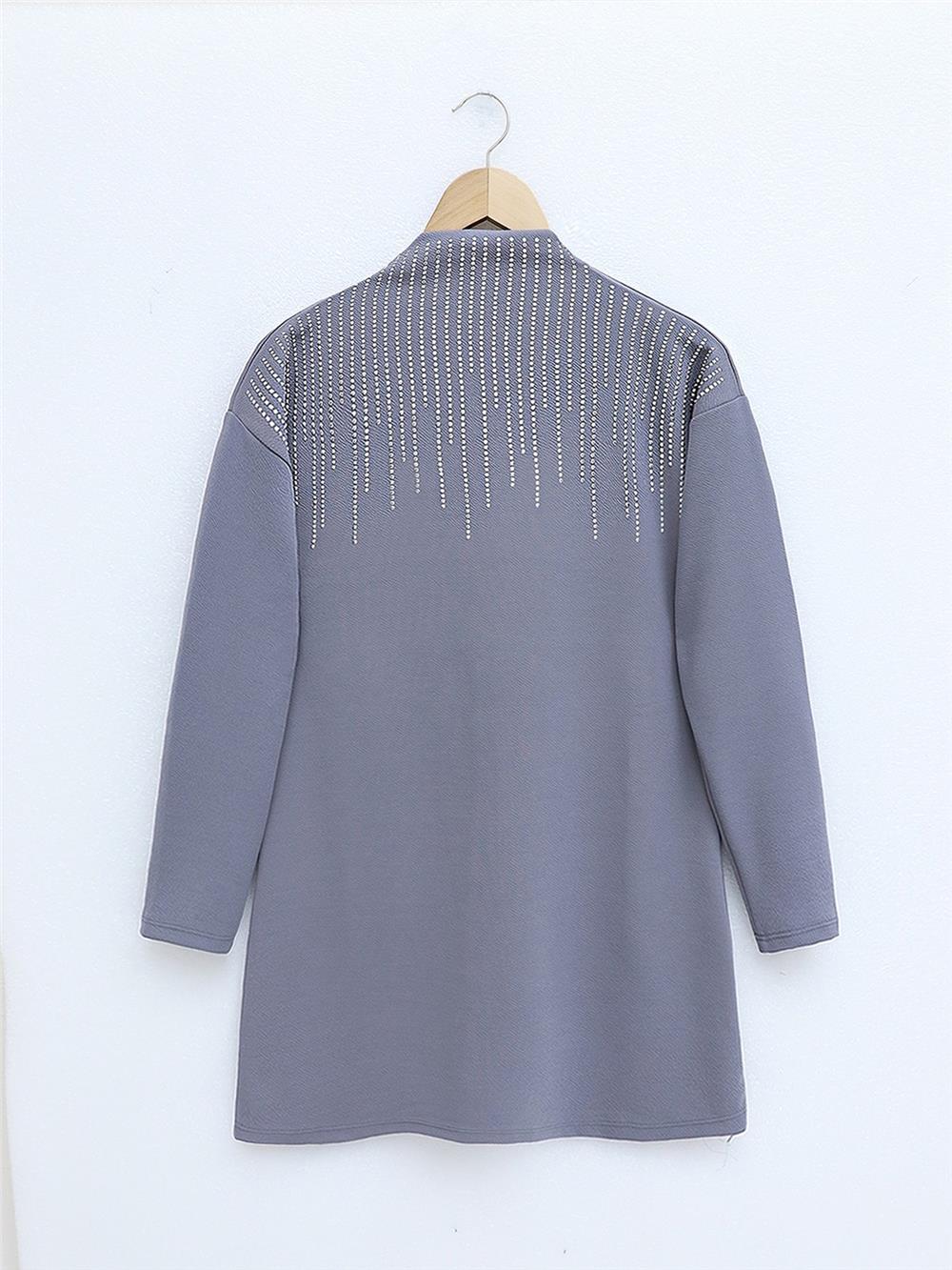 Judge Collar Front Stone Detailed Trousers Suit - Gray (349-5019-R11)
