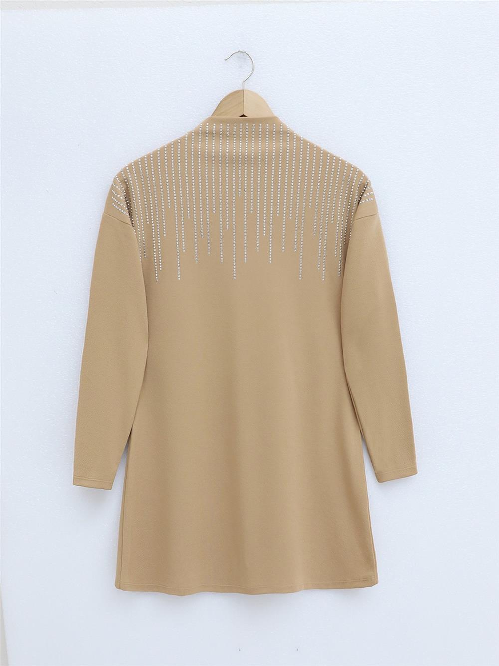 Judge Collar Front Stone Detailed Trousers Suit -Mink (349-5019-R23)