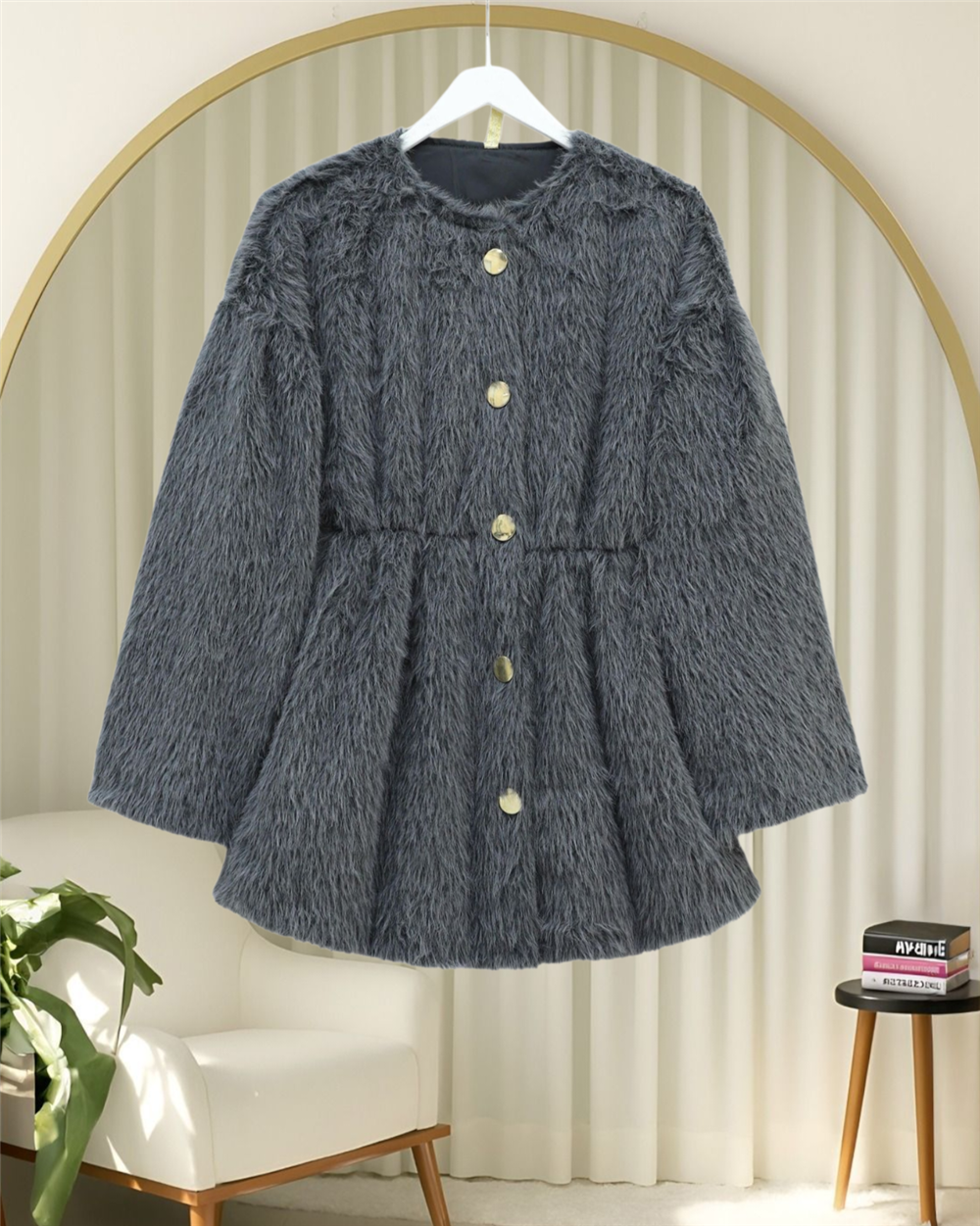 İçi Astarlı Beli Büzgülü Kürklü Ceket -Füme (398-99009-R18)