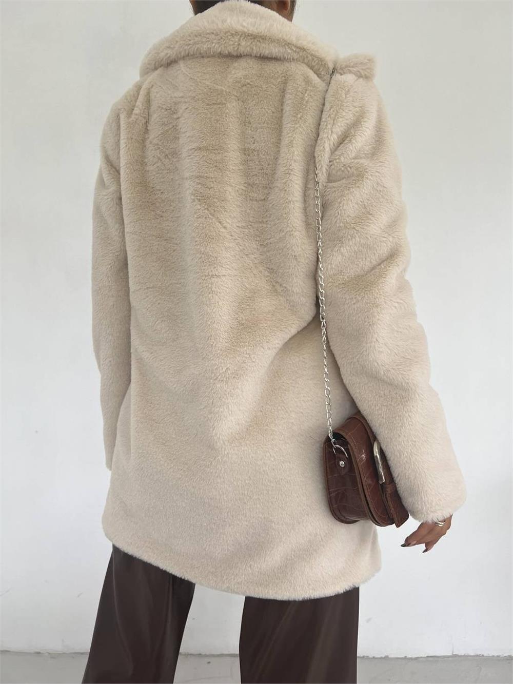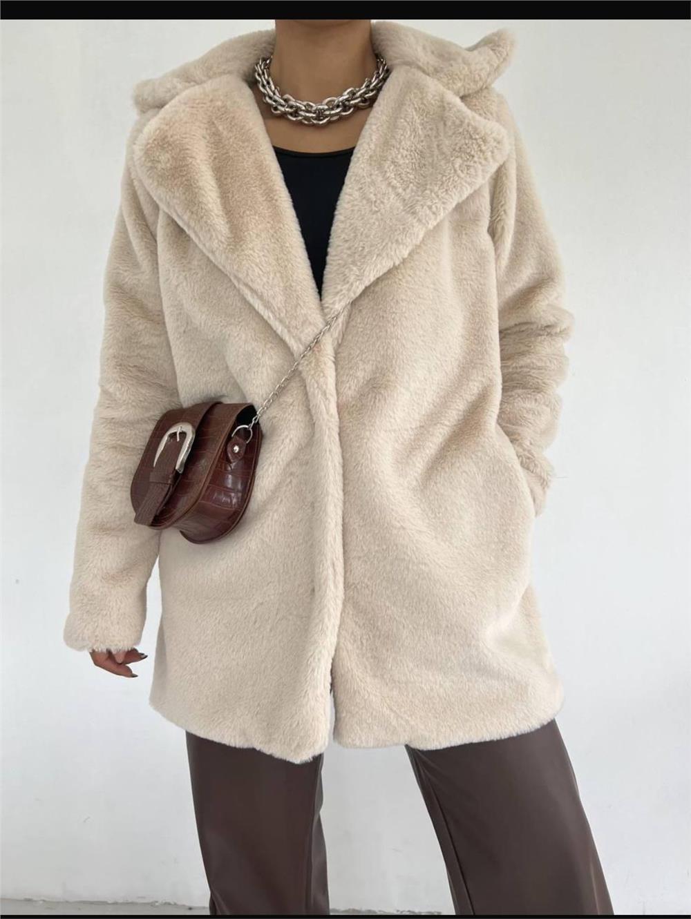 İçi Astarlı Cepli Kürklü Ceket -Taş (365-6063-R43)