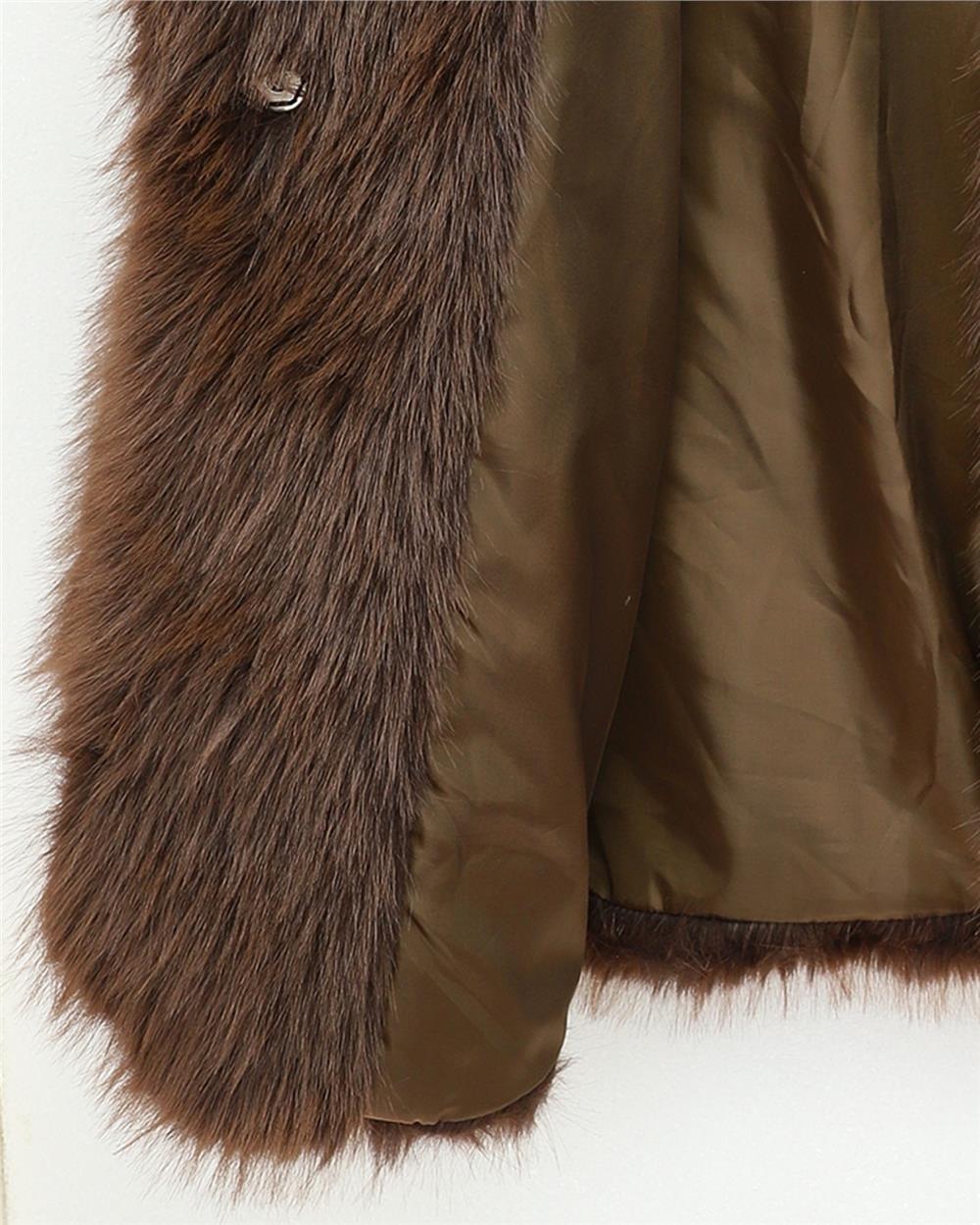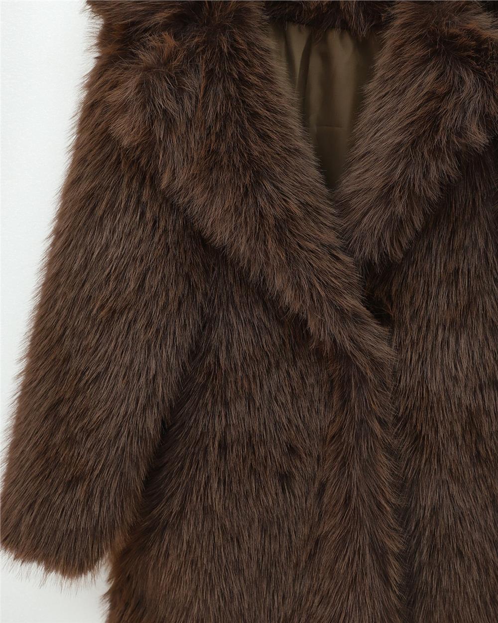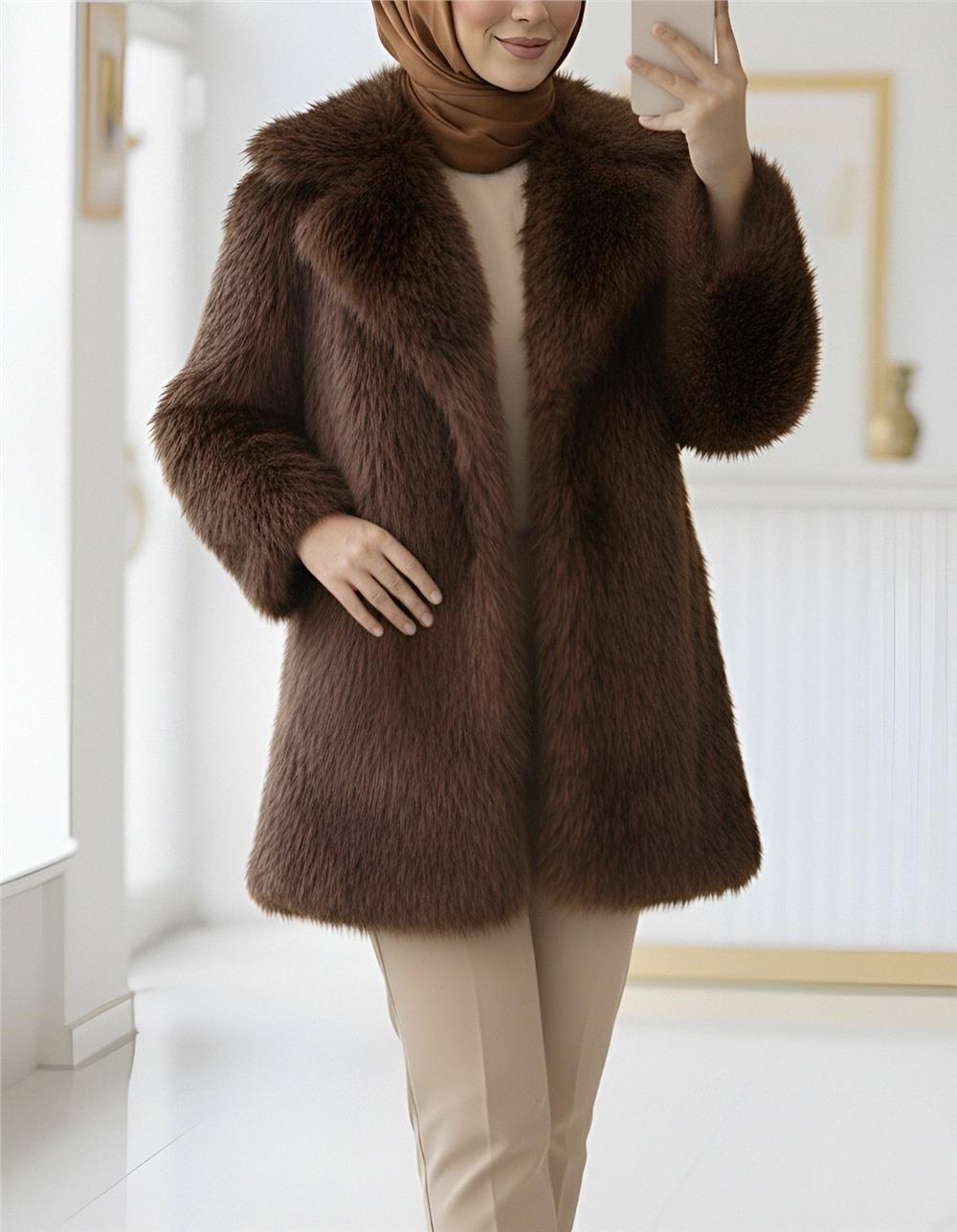 İçi Astarlı Tek Düğmeli Kürklü Ceket -Kahve (348-2461-R15)