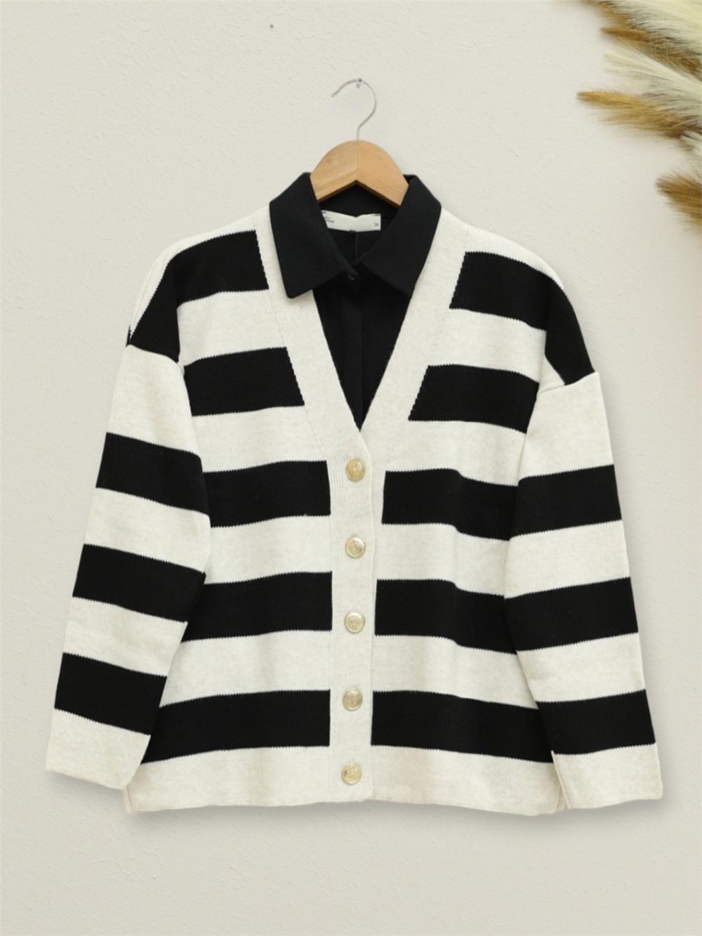 Thick Striped Araboy Knitwear Cardigan -Stone (357-5188-R43)