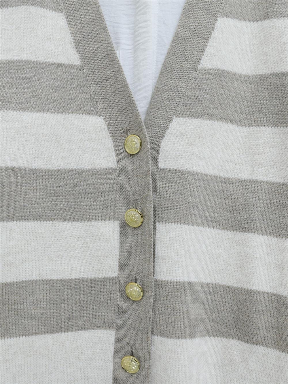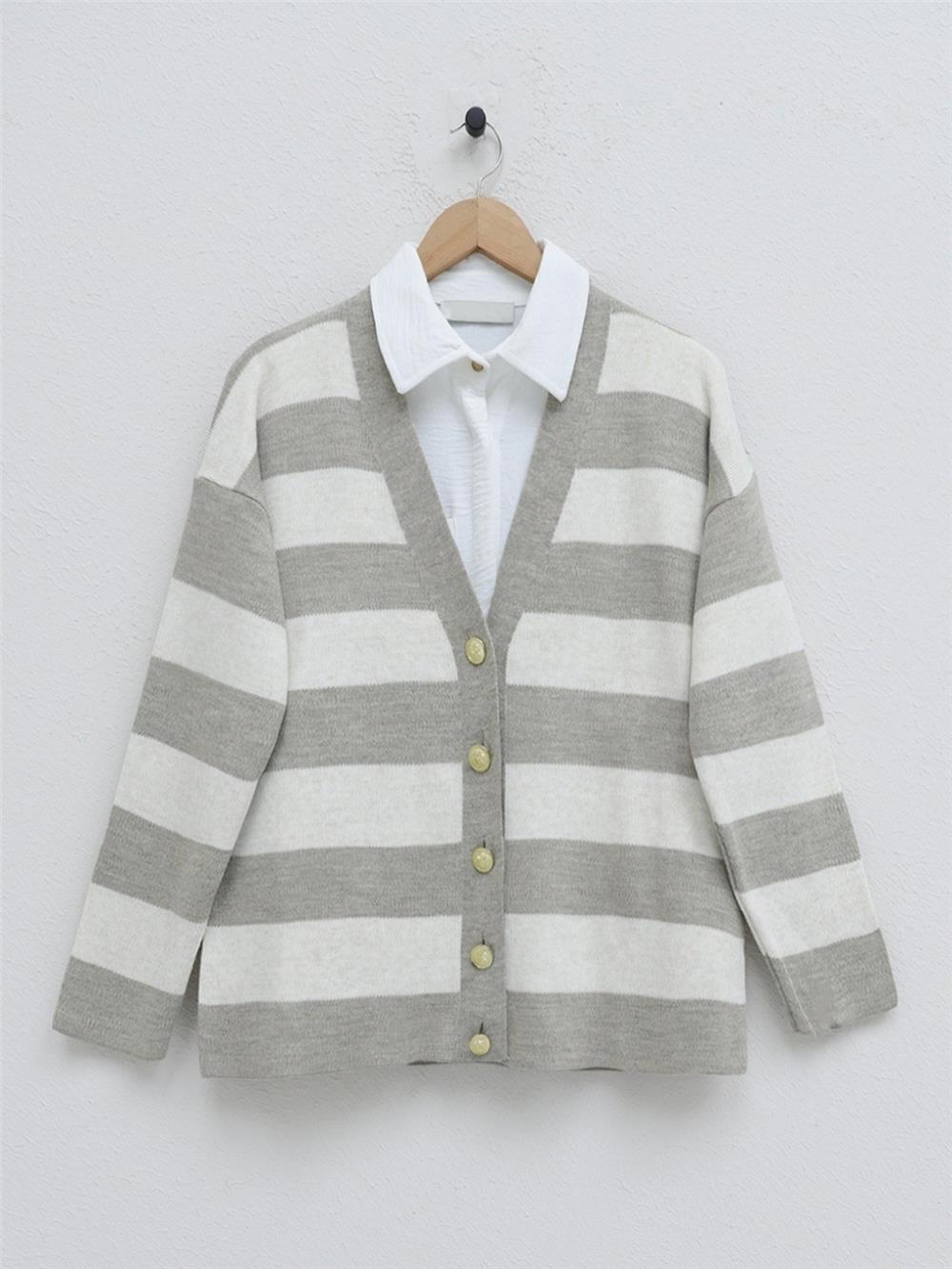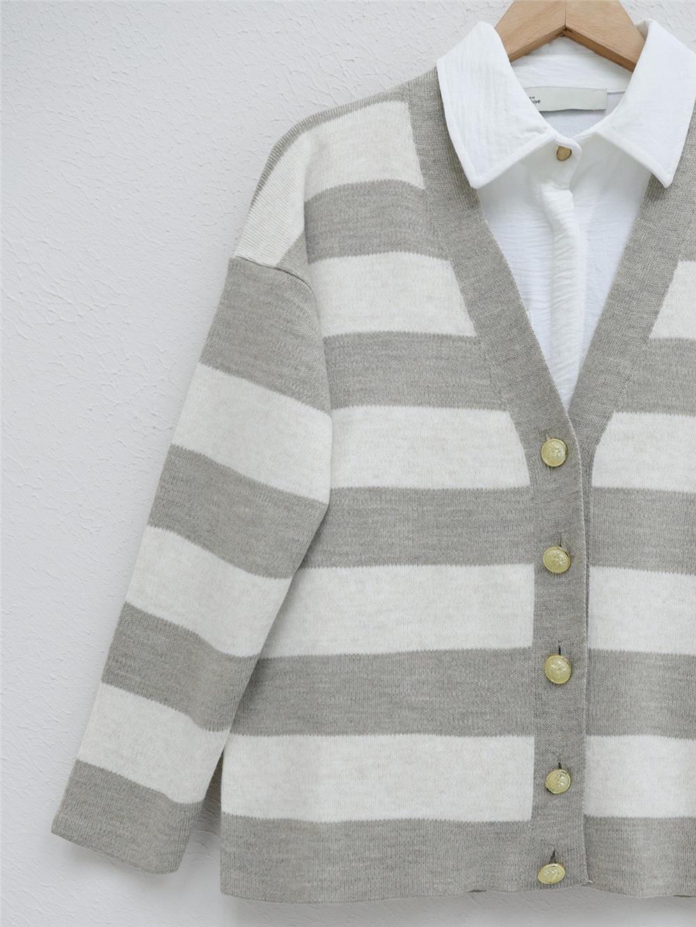 Kalın Çizgili Araboy Triko Hırka -Vizon (357-5188-R23)